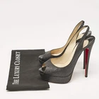 Our eBay Store About Us Contact Us Add to Favorite Sellers Christian Louboutin Grey Glitter Lady Peep Slingback Pumps Size 39 Designed to dazzle, these Christian Louboutin Lady Peep pumps feature shimmering grey glitter and a signature red sole. The peep-toe design and slingback strap add a classic touch to this statement heel. Product Details Brand Christian Louboutin Color Grey Includes The Luxury Closet Packaging Outsole Length 17.5 cm Outsole Width 6 cm Size 39 Certified by The Luxury Closet This item has gone through a detailed authentication process overseen by our experts. We offer a lifetime guarantee of authenticity on all our items. How We Check The in-house team of experts at The Luxury Closet is highly trained to verify the authenticity and the condition of the luxury products. They ensure that only 100% authentic items are put on sale.The evaluation process is unique with its own mix of assessment criteria and differs according to the category. Each item is evaluated based on the following combination of hallmarks, hardware, stitching, symmetry, material, craftsmanship, stamping, codes, hologram stickers, and packaging. Our authenticators also check if the items have been modified or amended (e.g., aftermarket diamonds, replaced batteries, repaired bags, etc.) International Buyers Import duties, taxes and charges are not included in the item price. These charges are the buyers responsibility. Please check with your country’s customs office to determine what these additional cost will be prior to buying.