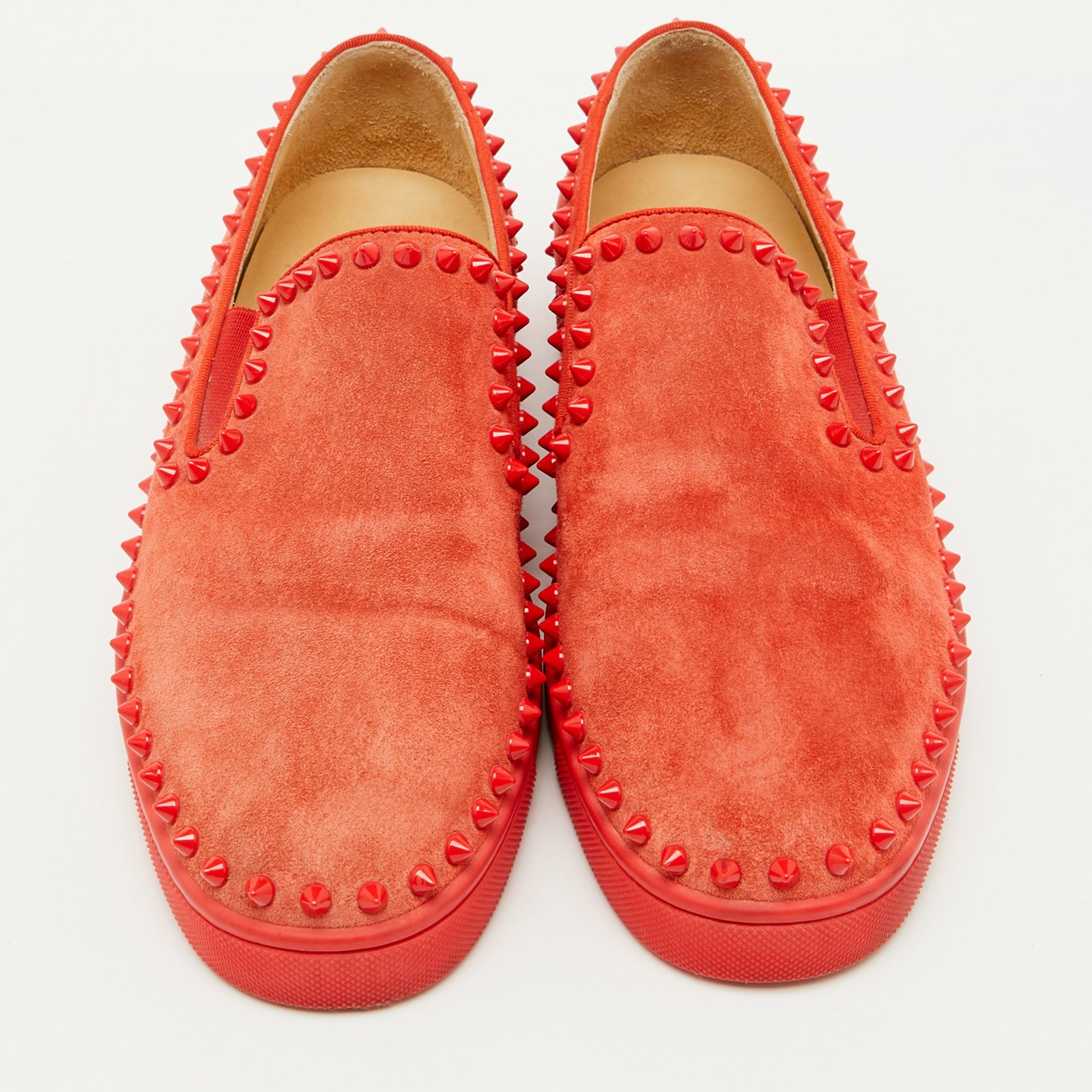Coming in a classic silhouette, these designer sneakers are a seamless combination of luxury, comfort, and style. These sneakers are finished with signature details and comfortable insoles.Certified by The Luxury Closet - This item has gone through a detailed authentication process overseen by our experts. We offer a lifetime guarantee of authenticity on all our items. Import duties, taxes and charges are not included in the item price. These charges are the buyers responsibility. Please check with your country’s customs office to determine what these additional cost will be prior to buying. Our eBay Store About Us Contact Us Add to Favorite Sellers Christian Louboutin Red Suede Pik Boat Slip On Sneakers Size 39.5 $552.2 Coming in a classic silhouette, these designer sneakers are a seamless combination of luxury, comfort, and style. These sneakers are finished with signature details and comfortable insoles. Product Details Brand Color Red Dimensions Material Suede Size 39.5 Outsole Width 10 cm Outsole Length 26 cm Heel Height Includes Original Dustbag Certified by The Luxury Closet This item has gone through a detailed authentication process overseen by our experts. We offer a lifetime guarantee of authenticity on all our items. How We Check The in-house team of experts at The Luxury Closet is highly trained to verify the authenticity and the condition of the luxury products. They ensure that only 100% authentic items are put on sale.The evaluation process is unique with its own mix of assessment criteria and differs according to the category. Each item is evaluated based on the following combination of hallmarks, hardware, stitching, symmetry, material, craftsmanship, stamping, codes, hologram stickers, and packaging. Our authenticators also check if the items have been modified or amended (e.g., aftermarket diamonds, replaced batteries, repaired bags, etc.) International Buyers Import duties, taxes and charges are not included in the item price. These charges are the buyers responsibility. Please check with your country’s customs office to determine what these additional cost will be prior to buying.