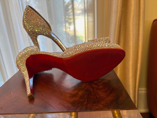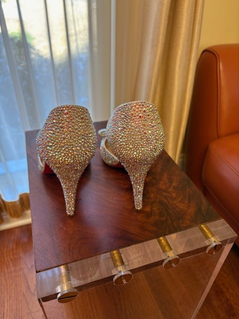 Christian Louboutin Silver sparkly crystals high Heels size 40 1/2 Please see other auctions for other high end shoes We combine shipping for multiple items