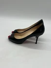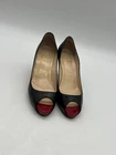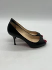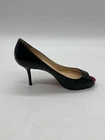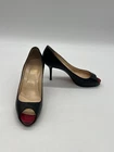 Christian Louboutin Very Prive Women 39 US 8.5 Black Leather Peep-Toe Heel Shoes. Shoes are in used condition and have signs of wear but shoes are still in great condition. Upper leather is in great condition and clean , inside is clean and the soles are in great condition. However right pair has a black spot at the front. Nice comfortable shoes for casual wear. Condition is pre-owned. Shipped with ups or usps priority mail. Sold as pictures. Thank you! Feel free to message me for any questions. Thank you