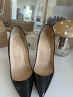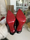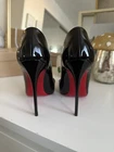 The Christian Louboutin Women's So Kate 120 Patent Black Leather EU 36.5 heels are a stylish and high-quality pair of shoes for women. These ultra-high stiletto heels feature a pointed toe and a solid black color with patent leather outsole and upper material. Made in Italy, these pumps are designed for a standard shoe width and have a leather lining and insole for comfort. The iconic Christian Louboutin brand ensures a touch of luxury and sophistication to any outfit, making these heels a versatile and timeless addition to any wardrobe.
