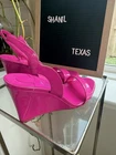 The Christian Louboutin ZEPPA CHICK 85 Ankle Strap Wedge Heels Sandals are a stylish and luxurious choice for women who want to make a fashion statement. Made from pink patent leather, these strappy sandals feature a comfortable ankle strap and a high wedge heel that adds a touch of elegance to any outfit. The iconic Christian Louboutin brand ensures quality and sophistication, making these shoes a standout addition to any wardrobe. Perfect for those who appreciate both fashion and comfort in their footwear choices.