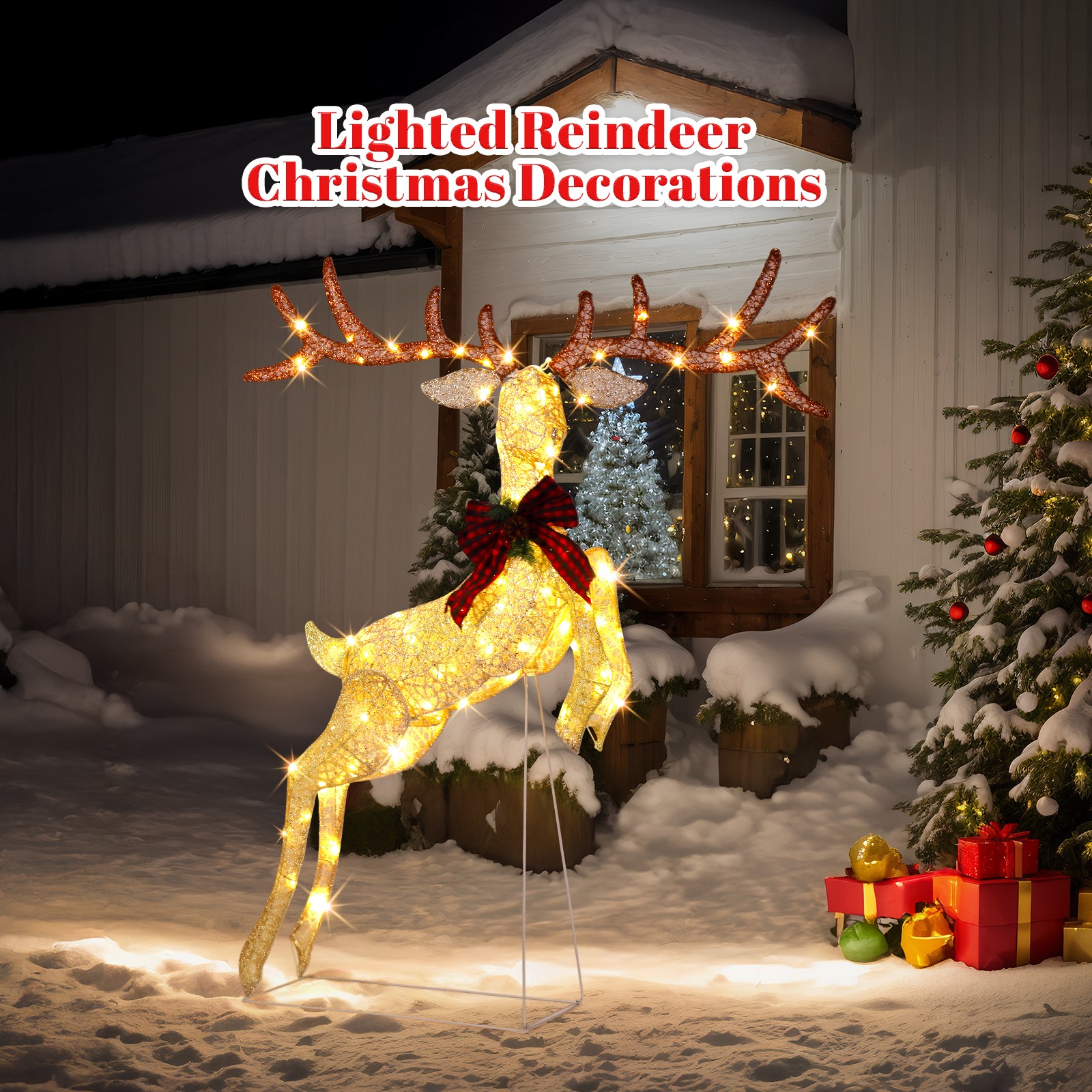 listing template VISIT OUR STORE SIGH UP FOR EMAIL Christmas 5FT Lighted Jumping Reindeer Decoration for In/Outdoor Lawn Decor 5FT Lighted Jumping Reindeer Christmas Decorations, Pre-lit Holiday Decor with 100 Warm White LED Lights for Xmas Outdoor Indoor Decor Lighted Holiday Displays Introd uctions: Create a warm and festive atmosphere with this enchanting set of Christmas lighted decorations. Perfect for both indoor and outdoor use, these glowing holiday displays will instantly brighten up your home, yard, or patio, making them a great addition to your seasonal décor. With durable construction and weather-resistant materials, these decorations are designed to withstand winter conditions, ensuring that they will bring holiday cheer year after year. Easy to set up and store, they provide a hassle-free way to enhance your holiday celebrations. Features: 1. Adorable Christmas Decoration: Featuring a vivid reindeer in jumping posture and decorated with a large bowknot, this decoration adds a playful and festive touch to any space. 2. Eye-catching LED Lights: Pre-lit with well-placed LED lights, this holiday display radiates a soft, warm white glow that illuminates your space beautifully at night. The lights bring your outdoor decor to life, making your home the highlight of the neighborhood during the holidays. 3. Easy Assembly & Storage: This collapsible Xmas decoration can be set up in minutes, allowing you to enjoy your festive display without hassle. Once the holiday season is over, it easily folds down into a compact size for convenient storage. 4. Weather-Resistant and Sturdy Build: Made from a durable, rustproof metal frame with sparkling fabric, this set is built to withstand wind, rain, and snow. 5. Perfect Holiday Decor for Indoor & Outdoor: Whether displayed in your living room, near your Christmas tree, on the porch, or in the yard, this lighted Christmas decoration adds a magical and cozy ambiance to any space. Its lightweight design makes it easy to move and position them wherever you want to spread holiday cheer. Specifications: 1. Number of Lights: 100 pcs 2. Light Color: Warm white 3. Voltage: 4.5V 4. Power: 3.6W 5. Overall Dimensions: (38.6 x 34.6 x 58.3) in / (98 x 88 x 148) cm Package Includes: 1 x Christmas Lighted Decoration Shipping Policy 1. Ship worldwide from New Jersey by reliable shipping companies -- USPS, UPS, FEDEX, DHL, etc., and only to VERIFIED PAYPAL ADDRESS. Transport Delivery ETA. Package handling only takes 1 business day at our warehouse, so please make sure entering correct payment and shipping information before checking out. Once your payment is completed, we are not going to accept any more changes to your order. 2. International Buyers – Please Note: a. Import duties, taxes and charges are not included in the item price or shipping charges. These charges are the buyer's responsibility. b. Please check with your country's customs office to determine what these additional costs will be prior to bidding/buying. 3. Please check your shipping address carefully before checkout, it can't be changed if order completed. 4. Orders placed on weekend will be shipped within 2 days.Notification of shipment with tracking number will be sent to buyers. 5. Standard shipping: 2-7 business days Expedited Shipping: 2-3 business days One-day Shipping: 1 business day International shipping: Varies 6.Ship within 1 business day once payment completed. Notification of shipment with tracking No. will be sent to buyer. 7.We offer discounts for combine shipping. Please contact us first if you need combine shipping, and an invoice with discount will be sent to you. 8.Please allow 5 business days for delivery to US destinations on any eBay orders and 14 business days for delivery to any International destinations. We highly recommend our buyer choose priority/expess mail for international delivery which is much more stable. Return Policies 1. Refunds given only if item DOA and cannot be replaced via PAYPAL . If so, Please contact us with 5 days since you receive the item and and return to us within 30 days from the delivery date for exchange or refund. 2. If you need return, please contact our customer service representative, let us know the detailed problem and send us some pictures for confirmation. Payment Payment should be sent within 8(EIGHT) days of auction closing. Feedback If you are dissatisfied for any reason, please do not be quick to leave negative/neutral feedback. We work hard to make sure EVERY CUSTOMER 100% SATISFIED and resolve any problem for you. Work Time Work Time: Monday to Saturday About Us | Newsletter| Feedback| Contact Us Copyright © 2022 LikeDeal. All rights reserved. 无标题文档 Christmas 5FT Lighted Jumping Reindeer Decoration for In/Outdoor Lawn Decor 5FT Lighted Jumping Reindeer Christmas Decorations, Pre-lit Holiday Decor with 100 Warm White LED Lights for Xmas Outdoor Indoor Decor Lighted Holiday Displays Introd uctions: Create a warm and festive atmosphere with this enchanting set of Christmas lighted decorations. Perfect for both indoor and outdoor use, these glowing holiday displays will instantly brighten up your home, yard, or patio, making them a great addition to your seasonal décor. With durable construction and weather-resistant materials, these decorations are designed to withstand winter conditions, ensuring that they will bring holiday cheer year after year. Easy to set up and store, they provide a hassle-free way to enhance your holiday celebrations. Features: 1. Adorable Christmas Decoration: Featuring a vivid reindeer in jumping posture and decorated with a large bowknot, this decoration adds a playful and festive touch to any space. 2. Eye-catching LED Lights: Pre-lit with well-placed LED lights, this holiday display radiates a soft, warm white glow that illuminates your space beautifully at night. The lights bring your outdoor decor to life, making your home the highlight of the neighborhood during the holidays. 3. Ea