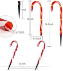 Christmas Candy Cane Lights Outdoor Pathway . If you are going to decorate your front patio decor of house for yard with Christmas candy theme of outdoor Christmas decorations. These Christmas candy cane sidewalk lights will work well for your candy Christmas decorations. The Christmas candy cane driveway markers is perfect for holiday candy cane Christmas outdoor candy décor. The warm soft glowing addition of these light up candy canes outdoor will decorate your indoor Christmas decorations and outdoor holiday decorations. The Christmas candy cane lights light up with a beautiful glow Christmas outside decorations and lawn Christmas decorations. And it is great to hang these candy cane Christmas lights on the window as window lights for traditional Christmas decorations. Candy cane pathway lights material are thick plastic, it is waterproof use for outdoor candy cane decorations, such as driveway decorations outdoor, lighted cross for yard, Christmas outdoor decorations lawn and candyland walkway decoration for Christmas. There are 7 incandescent clear bulbs on each string inside of plastic candy cane tube. Please check details for Christmas pathway lights outdoor if you are finding these candy cane Christmas ornaments for lighted candy canes outdoor Christmas decorations yard . The total length for the whole candy cane lights outdoor pathway is 6.3 feet, but the lighted length from the 1st candy cane to the last candy cane is 4 feet. And the lead wire length is 24 inch, the tail plug wire length is 4inch. The wire cable is white color. The white wires can be easily in the snow. This yard markers candy lights can connect up to 15 sets same candy cane lights for outdoor lighted holiday displays. The candy cane Christmas lights plug in 120v input voltage, this candy cane outdoor lights is safety for listed. Christmas Candy Canes Outdoor Decorations:Christmas pathway lights outdoor add nice touch to Christmas decoration outdoor candy decor. Christmas outdoor lights of candy cane Christmas decor is easy way to make outdoor Christmas light display stand out. It’s nice to use Christmas lights for pathway as a border for sidewalk from the driveway to the front porch as large outdoor Christmas decorations, or use candy cane ornaments like a fence outdoor Christmas decorations yard. Light up Candy Canes Outdoor Christmas Decorations:The red from the candy canes has a nice glow soft lighting make the driveway with warm atmosphere of Christmas holiday time. The Christmas candy cane lights is great for outdoor Christmas decorations. The candy cane sidewalk lights can be placed on sidewalk, driveway, yard lawn, hedges, front doors for Christmas candy outdoor holiday decorations and as Christmas lights for outside Christmas tree. Set of 5 Christmas Candy Cane Pathway Lights:The height for each Christmas candy cane lights is 12 inch. The driveway stakes height of 5"can go up inside the candy canes deep. The candy cane lawn stakes is long for covering deep ground. The spacing between each Christmas candy cane is 12 inch, all 5 candy canes are in string spaced evenly. The lead cord length before the first candy cane is 24inch,the last candy cane to the tail plug distance is 4inch.All outdoor candy canes length is 6.3FT. Easy to Set up for Candy Cane Christmas Outdoor Holiday Decorations: Please fit the wires in the slot of pathway light stakes, insert the stake into the cane bottom of plastic candy cane base, stake the plastic cane into the ground. Before plugging pathway light into the outlet, please be sure the candy canes fit rightly onto the top of the stake and then deep insert canes into the dirt or grass. It’s better to pre-dig hole for stakes if placing the candy cane lights into frozen or rocky ground. The driveway markers are 20"tall lighted candy canes large. The candy cane ground stakes height of 5"can go up inside the candy canes deep. The candy cane stakes is long for covering deep ground. The spacing between each candy cane is 20 inches, all 6 candy canes are in string spaced evenly. The lead cord length before the first candy cane is 24 inches, the last candy cane to the tail plug distance is 4 inches. A total of 10.66FT in length for all outdoor candy canes together.