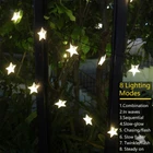 Solar Star String Lights, Outdoor Waterproof Solar Powered Star Shaped Twinkle Fairy String Lights,Solar Powered LED Decoration Lights for Patio Gardens Homes Landscape Wedding Party Christmas Tree. Features: This star string lights is solar-powered.After full-charged under sun it can keeping working more than 12 hours. Perfect to decorate Christmas, garden, landscap, lawn, patio, porch, fence, birthday parties, weddings, gardens, lawn, rooms and other celebration occasions;both indoor and outdoor use.It can create the atmosphere and lighting effects you desired. The solar panel MUST be installed in a well-lit location where it can receive maximum sunlight during daytime hours. Any cover that shades the panel will affect its ability to absorb sunlight and decrease the amount of brightness and duration of the LED lights. The lights and solar panel box are all weather devices - They should not be affected by exposure in rain, snow or temperature. Specifications: Waterproof: IP65 Wire material: Plastic Wire Color: Blackish green Power Source: solar Working Voltage: 1.2V Star Diameter : 1.6 inches/4cm Main Cable Length: 7m/23ft Leading Cable Length: 6.5ft (2m) Number of LED Balls: 50 Distance Between Two Star Lights:10cm Lights Color: warm white Bulb Life:Up to 100,000 Hours Charging time: 6-8 hours Working hours:more than 12 hours Light Mode: Combination;In wave;Sequential; Slo glo;Chasing/Flash; Slow fade; Twinkle/Flash; Steady On Package Included: 1 x Solar Star Light String 1 x pole 1 x pointed ground stake 1 x Instructions Buy with confidence. We have professional after-sale service. If there any issue with it, please leave a message and we will response and solve it within 24 hours. Your satisfaction is our top priority. 【OUTDOOR SOLAR STAR STRING LIGHTS】 Energy-saving and environmental protection, solar panels are efficient and durable;lights sensor:solar energy absorbed during the day and automatically lit up at night. 【8 LIGHT WORKING MODES】 Combination; In wave; Sequential; Slo glo; Chasing/Flash; Slow fade; Twinkle/Flash; Steady On; Make Your Life More Colorful. 【IP67 WATERPROOF AND DURABLE】 Waterproof Can Withstand All Kinds of Weather, Including Heavy Rain And Snow, Perfer for Outdoor Decoration; A charge-period of 6-8 hours Can provides lighting at Lease 12 Hours. 【WIDELY DECORATIVE OCCASIONS】 Christmas Tree, Garden, Patio, Landscap, Lawn, Fence, Porch, Party, Wedding, Home, Window, Bathroom, Festival, Holiday, Shows, Restaurant, Hotel, Yard etc. 【100% QUALITY ASSURANCE】 We offer 100% quality assurance. If you have any questions about quality, please feel free to contact us. We will always provide friendly service and a 24-hour email response.