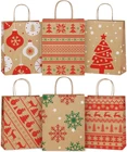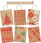 24 Gift Bags Provide 6 Assorted Christmas Designs. Red and green pattern elements provide a strong holiday atmosphere, making it super ideal to hold special presents for Christmas holiday. Suitable for wrapping gifts to your neighbors, teachers, families, friends, customers and so on. Gift Bags Medium Size. 8x4.25x10.5". These Christmas paper bags are perfect for Christmas parties or gifts decoration, Christmas gifts or gift boxes wrapping, Christmas Trees, Classrooms, Party Favors. Attractive design and sturdy material. A good Christmas paper gift bag option. Premium Christmas Kraft Gift Bags. Holding up to 8lbs, these sturdy kraft gift bags are made of 110g basis weight paper and have well constructed paper twist handles. No stray glue any where and the flat solid bottom can make it stand easily. Eco-friendly Christmas Paper Bags. These brown Xmax gift bags are made of Recycled Paper. FSC COMPLIANT. BagDream kraft Christmas gift bags are RECYCLABLE, no peculiar smell and look classier as gifts bags. Shopping Worry-free. We never want to make our valued customers disappointed. If there's any reasons you’re not happy with our Christmas gift bags, just email us and we’ll fix it up asap. Please keep these santa bags to avoid the hassle of shipping them back. Product Description BagDream 8X4.25X10.5" Christmas Gift Bags 24PCS Dust-Free Production Crafted in a specialized dust-free workshop, ensuring the highest quality for every paper bag. Load-Bearing Strength Each batch undergoes rigorous load-bearing tests, guaranteeing reliable performance with every use. Precision Craftsmanship Featuring imported adhesive on the bottom and handles, our paper bags are engineered for exceptional durability and strength. Christmas Paper Gift Bags Details Package of X-mas brown gift bags: 6 patterns and 4 bags per pattern. You will get pack of 24pcs gift bags. Paper bags with handles: 110g basis weight. Made of Recycled Paper with a serrated top edge. Christmas paper gift bags: Red and green color elements provide a strong holiday atmosphere, making it super ideal to hold special presents for Christmas holiday. Perfect for Christmas gift bags or party favor bags.