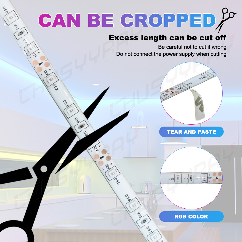SMD 2835 RGB Led Strip Light (This package does not include power supply ) (Please contact us if you need power) Description: Color: RGB (Red Green Blue) Flash SMD View angle: 120° Length: 5 m Cuttable: Every 3 LEDs Supply voltage: DC 12VOperating temperature: -20 to 60 degree LED quantity: 30LEDS/m, 150 LEDs Lifetime: 50,000+ hours Working Temperature: -20°C-60°CInput/Output: 12V Product Features: Maintenance free, easy intallation Ultra-bright but running at low temperature 6 DIY keys for memorizing 6 Color settings Long life 50,000 hours,Low power consumption Ultra-bright but working at insufficient temperature Self-adhesive back with Adhesive tape for secure and easy application Every 3-LED cutable without damaging the rest strip ,according to your requirement Superb 2835 SMD LED, High Intensity and Reliable.Fully smooth and even diffuse light, solving the uneven light problem Ribbon Flexible curve around curves,Flexible LED strip 8 Light Pattern: Quick / Slow / Auto / Flash / 7 color fade change / 3 color fade change / 7 color jumpy change / 3 color jumpy change R / G / B increase and decrease control Application: Ideal for decoration of construction lines, landscape lighting, theme entertainment,Holiday sculpture of light, decorative figure, active signs, displays, showcasesAnd showcases, bar, disco, street, sidewalk, bridge, park, porch, staircase, railing, ceiling, Package includes: 1x Waterproof 5M Light Strip 1x LED Strips Wireless Remote Control System (This package does not include power supply) On Dec 16, 2024 at 22:19:43 PST, seller added the following information: