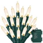 LED Mini Lights for Home Decor and More! Our selection of mini lights is the ideal choice if you're looking for little lights to make a big impact. These conveniently designed lights are perfect whether you are trimming the tree for Christmas, planning a party, organizing a wedding or just decorating. LED Bulb - Low Energy Consumption and More Safe All of Christmas Lights use LED Bulbs with ultra low power consumption rather than Incandescent bulbs which are easy to get hot or burnt out. Our mini lights are cool to touch even though you keep them on all the time. Battery Operated String Lights for Indoor and Outdoor Decor Mini Lights are powered by 3 AA batteries - no awkward cords are going down to the outlet and no need to run power that far for Outdoor Christmas Decor Waterproof Battery Case for Outdoor Use Our LED mini lights come with a waterproof battery case. These lights could keep on even in rainy or snowy day. But DO NOT sock the battery case directly into the water. Functions: 8 Twinkling Modes Our Battery Operated String Lights have 8 Twinkling Modes: Combination, In Wave, Sequential, Slo-Glo, Chasing/Flash, Slow Fade, Twinkle/Flash, Steady On. Timer Function - 6 Hours On and 18 Hours Off Christmas Lights have a built in timer and the lights will be 6 hours on and 18 hours off automatically to improve battery efficiency. Mini Lights are designed for indoor and outdoor use which are perfect for Christmas trees, wreaths, wrapping trees, patios, pergolas, bushes, hedges, fences, pillars, weddings, holidays, outdoor car parties or any occasions when decoration lights are needed. Battery Operated Christmas String Light – No awkward cords going down to the outlet, no wiring or external power supply needed, convenient to place it anywhere you like.18 feet 50 mini led green wire great suitable for 24'' wreath and 10 ft christmas tree. Auto Timer Function & 8 Modes – Built-in timer (6 hours ON and 18 hours OFF) will free your hands and avoid forgetting to turn off the Christmas lights, 8 different lighting modes (Combination, In Wave, Sequential, Slo-Glo, Chasing/Flash, Slow Fade, Twinkle/Flash, Steady On) can satisfy your diverse needs. Outdoor and Indoor Christmas Lights – Battery box and string lights are waterproof(3*AA size battery, NOT INCLUDED), these are perfect to use on indoor and outdoor. Easy and great decor for Christmas tree, outdoor trees, wreaths and garland. Wide Application – This 50 LED mini light set gives off natural charming lighting, help you to create an amazing and romantic atmosphere in your home. Perfect for Christmas, Valentine's Day, Easter, wedding, party and other celebration occasions even daily lighting decoration, great for indoor and outdoor decoration. Satisfaction Guarantee – All of our battery string lights are tested the quality and safety. if you have any question about our Christmas string lights, please don’t hesitate to contact us at any time for a best solution.