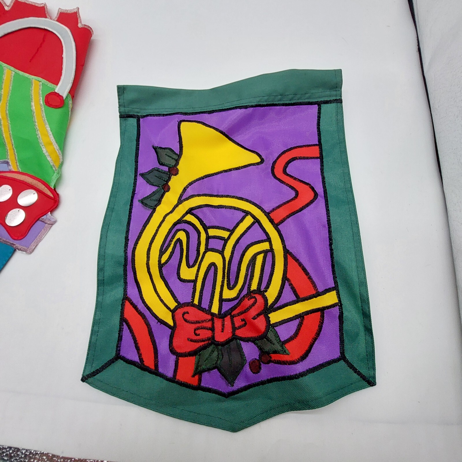 Christmas Mini Flags 1 Christmas gifts 11'x18 & 1 French Horn 10x13 Lot Of 2 Read
