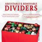 Heavy Duty Fabric Christmas Ornament Storage Container - Holds up to 96- 3 Inch Ornaments Don't be heartbroken this year when you open up your holiday decorations expecting them to be in the same condition as when you've stored them but only to find out they're either broken, damaged, or lost their luster. Stop storing your ornaments in makeshift boxes and wrapping them in tissue or newspaper doing more harm than good. Try our Christmas Ornament Storage Container and protect your ornaments. Sturdy, Generously-Sized and Incredibly Convenient - Protect your ornaments from dust, dirt, discoloration, and breakage. This Christmas Ornament Storage Container will neatly protect and organize your holiday ornaments with ease. That's because this holiday storage container comes with removable trays and durable handles. No need to carry the entire container with you when you're removing the ornaments from the tree. Premium Quality Design Makes Storing Your Ornaments Effortless. KEY FEATURES: Secure Top Lid and Identification Card Slot 4 - Acid-Free Thick Cardboard Trays Each Tray Holds up to 24 - 3in Ornaments Durable Zippers Cheerful Holiday Colors Sturdy, Side Rope Handles Premium Quality - Non-Woven Fabric 100% SATISFACTION GUARANTEE Why Wait!? Click "Add to Cart" to order your Christmas Ornament Storage Container today! Store up to 96 Ornaments Safely: This 3-inch ornament storage box features cardboard dividers, keeping your Christmas balls secure and organized for easy access. Maximize Convenience with Lift Trays: The box includes 4 stackable trays, each with a comfortable-fit lid and durable side handles for effortless portability. Carry with Ease: Featuring 2 sturdy carrying handles, this ornament storage container makes transporting your decorations a breeze. Perfect Dimensions for All Ornaments: Store both large and small ornaments with ease thanks to the front-opening and spacious design of this Christmas storage box. Preserve Your Ornaments with Premium Dividers: Made from durable, acid-free cardboard, the dividers prevent fading and damage, ensuring your ornaments stay in top condition.