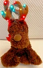 Brown Reindeer with light up antelers plush. Sings jingles bells, head moves white he sings. Great addition to your home for christmas decor. Charming plush reindeer antlers light up as he sings jingle bells and his head dances around. Vintage.