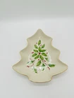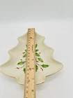 This beautiful Christmas tree trinket dish by Lenox is sure to add a touch of elegance to your holiday decor. Featuring intricate holy leaves and gold trim, this dish is made of high-quality porcelain, bone china, and ceramic materials. It was manufactured in 2006 and is part of the 2000-2009 time period. Perfect for storing small trinkets or jewelry, this multicolor dish is a great addition to any Christmas tree. Whether you're a collector of holiday memorabilia or just looking for a unique decoration, this Lenox trinket dish is sure to impress.