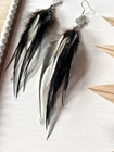 Make a bold statement with these uniquely designed handmade feather earrings. Their captivating combination of black tones and intricate detailing is perfect for adding an artistic touch to your look. Lightweight and elegant, these earrings are sure to attract attention and spark compliments wherever you go. Whether for a special occasion or to elevate your everyday style, these earrings are the perfect accessory to express your individuality! Features: * Materials: feathers, silver hook, metal findings * Length: 17 cm (7 inches) * Closure: hook I accept custom orders! Processing time 1-3 business days! Worldwide shipping 7-13 business days! SUPPORT 24/7!