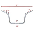 Chrome 12" Rise 1.25" Ape Hanger Handlebar Fit for Harley Touring Electra Glide Baggers FLHT Dressers FLHTC 1982-Up About this item 1、Fit for Harley Touring models, Dressers, Baggers, FLHT, FLHTC from 1982 to present including. 2、May work on throttle-by-wire models with custom fitting and any custom application. 3、Will not fit with Dual Headlight models. 4、Not easy to fade, has a strong visual effect, the beautiful appearance and your motorcycle seem to be a match made in heaven. 5、Better basic rigidity, better mechanical properties, stronger puncture impact resistance, increased safety factor, considered safe. Product Description ※ Rise: 12" ※ Diameter: 1.25" ※ 11.42" backward sweep. ※ 36.93" wide from tip to tip. ※ Handlebar grip ends taper down to 1". ※ 3.5" on-center knurling for firm mounting. ※ Center section tapers to 1" so that standard handlebar controls fit. ----------------> ※ Material: Iron ※ Color: Black / Chrome ※ Package contains: 1x Handlebar ※ Aftermarket 100% brand new. ※ High class quality and very durable. Good working condition and easy to install. ----------------> ※ Fitment: Fit for Harley Touring models, Dressers, Baggers, FLHT, FLHTC from 1982 to present including. May work on throttle-by-wire models with custom fitting and any custom application. ※ Will not fit with Dual Headlight models. ※ Will not fit Road King & Road Glide Models. Fit for Harley Electra Glide Standard FLHT 1982-later Fit for Harley Electra Glide Classic FLHTC 1982-later Fit for Harley Ultra Limited FLHTK 2010-later Fit for Harley Ultra Limited Low FLHTKL 2015-2019 Fit for Harley Ultra Classic FLHTCU 1982-later Fit for Harley Street Glide FLHX 2006-later Fit for Harley Street Glide Special FLHXS 2014-later Fit for Harley CVO 1982-later ※ Buyer needs to check the application according to the measurement above On Dec 24, 2025 at 00:29:47 PST, seller added the following information: