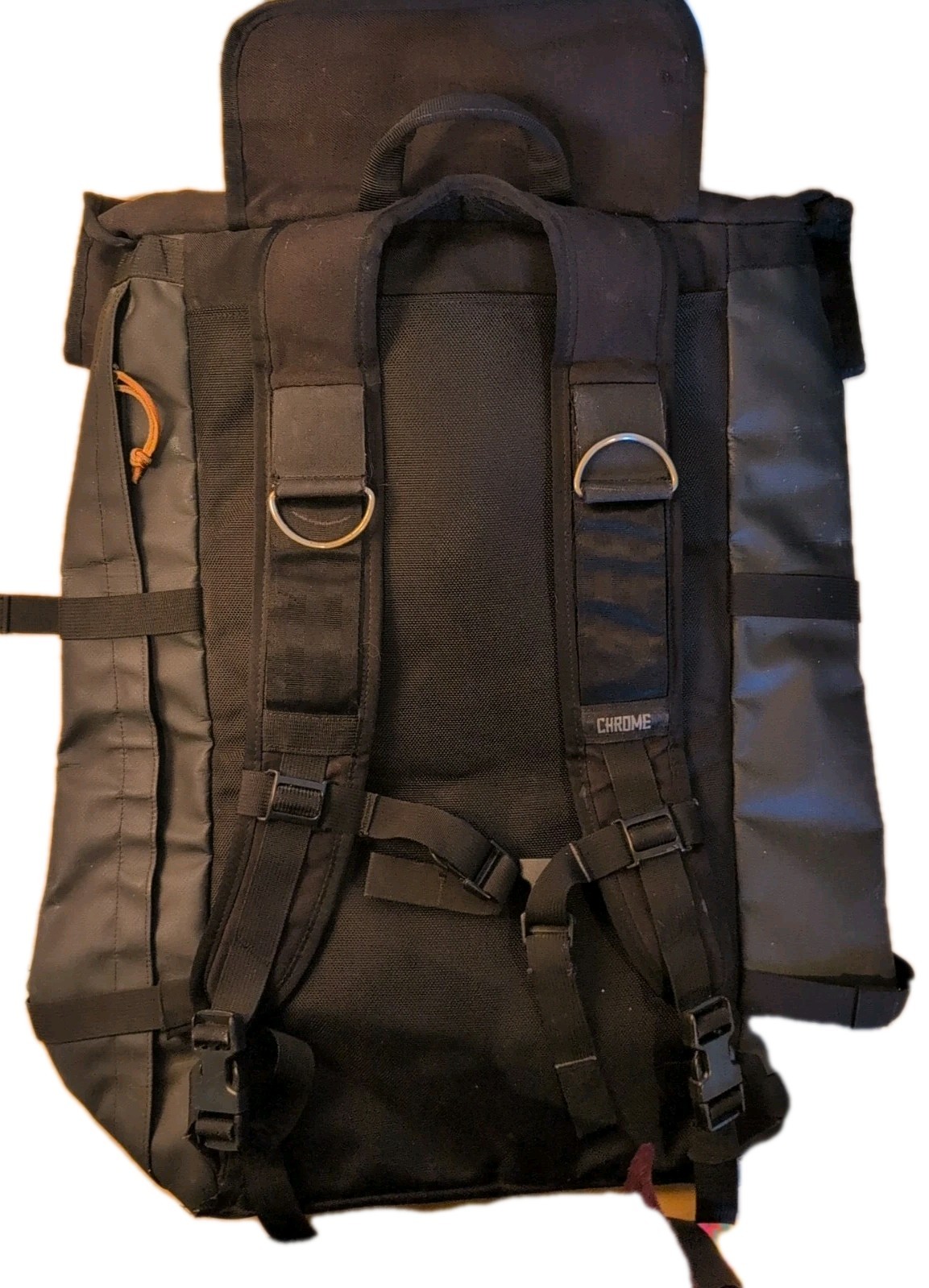 Chrome Industries Roll Top Backpack Cycling Drybag Waterproof Bike Messenger Pre-owned. See photos for condition details and measurements. To upcycle, I reuse shipping material as often as possible. Buy more from my store and save on shipping.