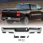 Specification Color: Chorme Dual Exhaust: With Dual Exhaust Sensor Holes: With parking aid sensor holes Finish: Chorme Material: Steel Type: Rear Bumper Placement on Vehicle: Rear Fitment Type: Vehicle Specific OE/OEM Part Number: 68404443AA, 68404443AB Partslink Number: CH1103147 Installation Instruction: Not Included Fitment 2019-2023 Ram 1500 Features & Benefits Product Description: 【FITMENT】Our Front Bumper is specifically designed to be compatible with 2019-2023 RAM 1500 models. Please note that it is ONLY compatible with models featuring Dual Exhaust + with Rear Parking Assist Sensor. 【Interchange Part number】This bumper can replace the following part numbers: 68404443AA, 68404443AB, CH1103147. 【Excellent Performance】Featuring non-slip steps, this Dodge Ram rear bumper ensures a safe and convenient entry and exit for your family. More than just a practical addition, it can absorb and slow down external impacts, protecting your vehicle and passengers during collisions and reducing the risk of injury. 【Quality Material】Constructed from high-quality steel and lightweight ABS plastic, this rear bumper offers exceptional durability against wear and rust. No additional drilling or cutting is required, and it also adds a touch of style to improve the overall aesthetics of your car. 【Easy Installation】Our front bumper is easy and quick to install as a direct replacement. The package includes: 1X Rear bumper, along with the necessary mounting brackets and screws. Please note that this product is intended for placement on the rear of your vehicle.