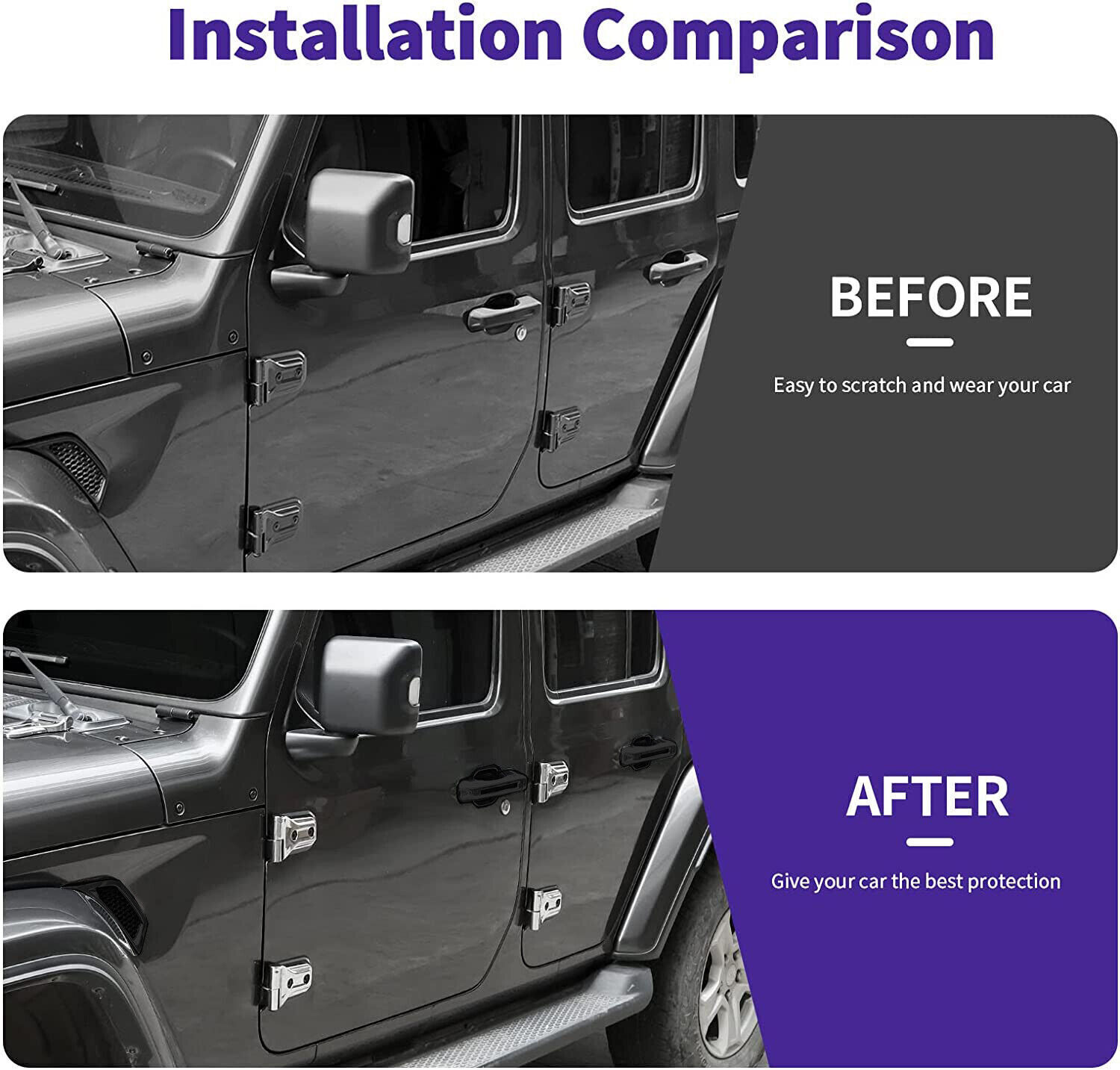 Item Fitment: Fit for Jeep Wrangler JL 2018+ 4-Door Item Description : Condition:100% Brand new Material :Made of high quality ABS Plastic Inculde:11pcs Tailgate handle +Door handle cover trim Factory-Quality,Made in a ISO9001 Fatory Easy installtion,Double-sided Adhesive tape is attached Decorate your car charming luxury vivid Notice: Please check if the parts of your car are the same as our pictures. Due to light and screen differences, the item's color may be slightly different from the pictures. If have any questions please contact us, thanks! Description: Fit for: For Jeep Wrangler JL 2018+ 4Door Color: Chrome Material: High-Quality ABS Package Include: 23pcs 100% Brand New with High Quality Provide a high-class and fashional style for your car Installation and introduction: DIY item --- Easy to install. Pls use alcohol or an agent to clean the position of the installation (to make sure it is without grease. Wax or dust etc.) Pls ensure the position of installation can be completely fit the case before installation, (Note: if there any questions or misfit, please contact us) Rive the strong double-sided adhesive of the back, if meet the case of a relatively low temperature, please heat it via the hair dryer or lighter. According to the comparison stick up it and press about 1-2 minutes (Note:do not wash your car in 24 hours, the adhesive should be fixed after 12 hours ) The installation has been completed.