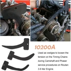 6PCS Camshaft Phaser Timing Chain Tools for VW Chrysler Jeep Dodge 3.6L 10200A+10202 10202-1 is used on Right Bank 10202-2 is used on Left Bank 10202- Used to hold the Camshaft/Phaser`s while performing the loosening and tightening of the Oil Control Valves during survice on Routan with 3.6 liter Engine. Note: 10202-1 is used on Right Bank 10202-2 is used on Left Bank 10200A-Used as wedges to loosen the tension on the Timing Chains during Camshaft and Phaser service procedures on Routan 3.6 liter Engine This tool also Compatible with Chrysler V6 3.6L equipped vehicles such as : 2011 (Journey, 200, 200 Convertible, Avenger, Sebring, Sebring Convertible, Challenger, Charger, 300, 300C, Charger, Magnum, Grand Caravan, Caravan, Town & Country, Durango, Grand Cherokee) - Systems (9 - Engine, 3.6L) 2012 (Journey, Wrangler, 200, 200 Convertible, Avenger, Sebring, Sebring Convertible, Challenger, Charger, 300, 300C, Charger, Magnum, Grand Caravan, Caravan, Town & Country, Durango, Grand Cherokee) - Systems (9 - Engine, 3.6L) 2013 (Ram Truck 1500, Journey, JF, Wrangler, 200, 200 Convertible, Avenger, Sebring, Sebring Convertible, Challenger, Charger, 300, 300C, Charger, Magnum, Grand Caravan, Caravan, Town & Country, Durango, Grand Cherokee) - Systems (9 - Engine, 3.6L) 2014 (Ram Truck 1500, Journey, JF, Wrangler, 200, 200 Convertible, Avenger, Sebring, Sebring Convertible, KL, Challenger, Charger, 300, 300C, Charger, Magnum, Grand Caravan, Caravan, Town & Country, VF, Durango, Grand Cherokee) - Systems (9 - Engine, 3.0L Gasoline, 9 - Engine, 3.2L, 9 - Engine, 3.6L) 2012 and newer models also require 10369A. Some 2011 models may also require 10369A, depending on the size of bolt in the front cover tightening sequence on the right bank (cylinder head closest to firewall). If that bolt head is 13MM you need 10369A. Note: 10200-1 & 10200-3 are used on Drivers Side, 10200-2 is used on Passenger's Side. Package included: 1x Timing Chain Holder 10200-1 1x Timing Chain Holder 10200-2 1x Timing Chain Hook 10200-3 1x Camshaft Phaser Locks Miller pn 10202-1 1x Camshaft Phaser Locks Miller pn 10202-2 1x Timing Chain Holder 10369A