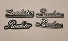 What I believe is 4 Chrysler Roadster Emblems. The metal Roadster (with no lines) I was able to find pictures of as a 1988-1993 Chrysler New Yorker piece, but have not been able to find anything for anything else. Selling as a lot of all 4 as pictured. There is one (a single line) that is warped, but none have any notable (deep scratches, cracks, etc) damage. See photos for better detail. Any questions? Feel free to ask! Location - 79