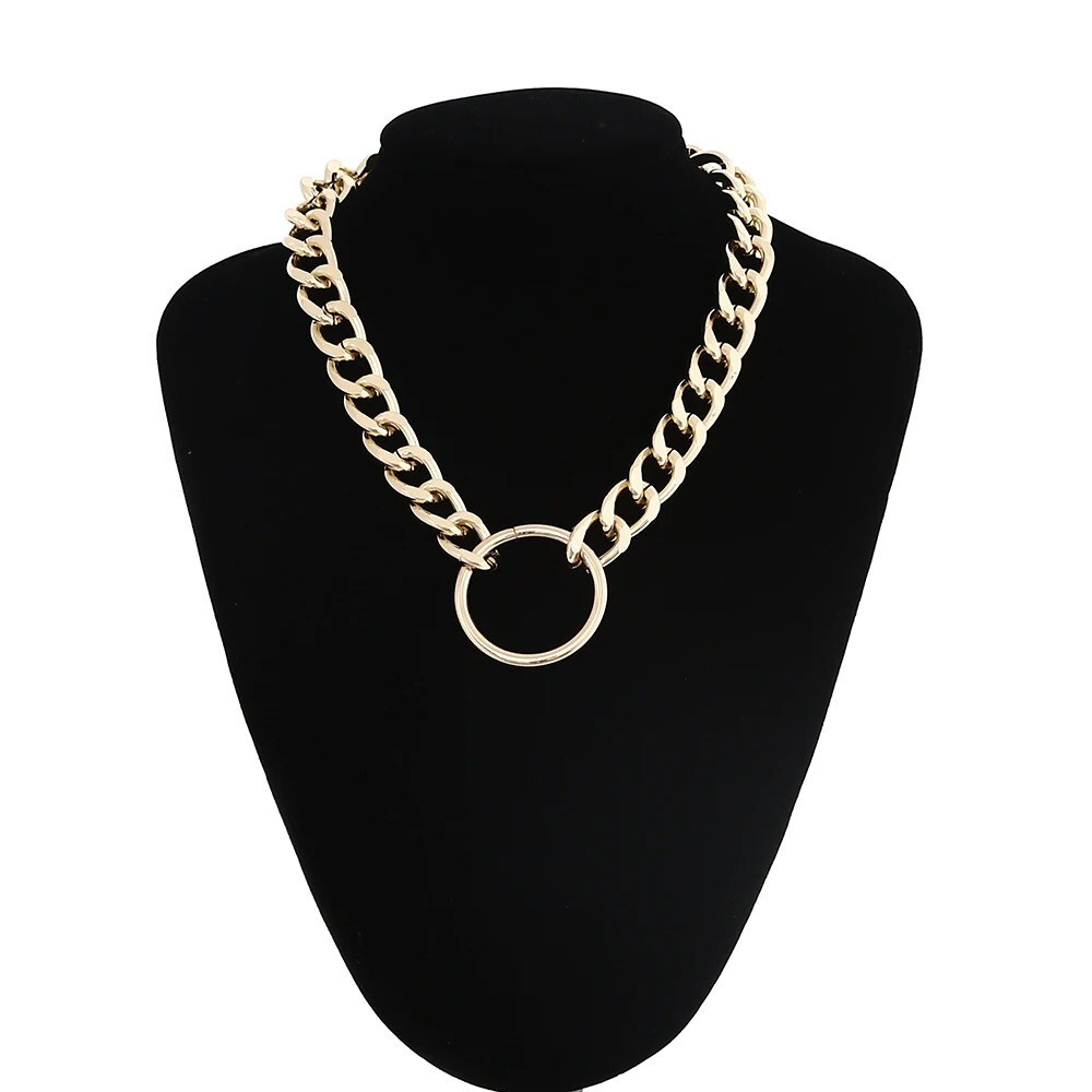 Elevate your accessory game with the Zan Kash Chunky Gothic Chain Necklace, a piece that seamlessly blends punk attitude with a touch of grunge fashion. This thick choker, crafted from durable stainless steel, boasts a striking gold hue that adds an instant edge to any outfit, making it a versatile choice for both men and women. The necklace features a robust curb link chain and a round pendant, both designed to make a statement. With its lobster clasp closure ensuring a secure fit and the option for wholesale, it's as practical as it is stylish. Whether it’s an anniversary, birthday, graduation, or wedding, this necklace is a perfect gift that captures the essence of artistry and individuality.