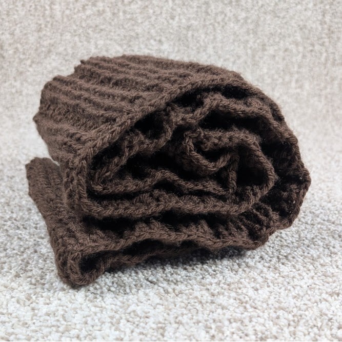 Chunky knit infinity scarf in a rich brown hue. This handcrafted accessory showcases a textured crochet stitch creating a substantial and warm feel. The circular design allows for versatile styling as a single loop or doubled for extra coziness. Please see pictures for measurements. Please compare the measurements to something you already own. From Smoke Free/Cat Friendly Home Keywords: crochet scarf, infinity loop, winter accessory, neck warmer, handcrafted, textured knit, warm scarf, cozy, fall fashion, winter fashion, thick scarf, casual wear