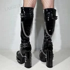 These boots are absolutely stunning! The chunky platform and bold chains give them serious edge, while the 15cm heel adds killer height without sacrificing comfort. The zip-up design makes them easy to slip on, and the studded details add extra attitude. Shipping took about 3 weeks to the US, which was expected. They fit true to size and feel sturdy—perfect for making a statement all season long!