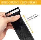 Cinch Straps 2" X 24" 4 Pack Elastic Hook And Loop Storage Strap For Extension Product Description Cinch straps are made of nylon and super-stretch elastic hooks and loops. The 24 inch elastic cinch straps can be extended to 43” length. Super strength and adjustable allowing you to precisely wrap and bundle everything item, reducing extension cord, cables, wires, hoses, and fishing rods, camera stand, skateboards and golf clubs tangles and confusion. Multiple straps can be combined together to extend the length. Each reusable cinch straps has a perfectly designed triangular tongue piece, which can quickly and easily pass through the buckle from the bottom of the buckle ring, and then back onto itself for a secure hold. Hook and loop straps for secure attachment and additional grip surface to ensure that the cargo is stable. They are very suitable for storage and organization in houses, yards, garages, workshops, storage sheds, cars, ships, and bicycles, and get organized! Size information - Max Wrapping Capacity (Circumference) is 41 inches and Max Wrapping Capacity (Diameter) is 12.75 inches, measures 24 inches in length and 2 inches in width when unfolded.