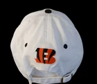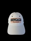 This is a white snapback hat featuring the Cincinnati Bengals team logo, officially licensed by the NFL. Made by Fanatics, this unisex adult cap is suitable for football fans and enthusiasts. It is part of the NFL Pro Line collection and is designed for fans to show support for the Cincinnati Bengals during football events and tournaments. Preowned and in good condition.