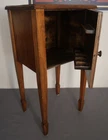 Up for sale is a Circa 1900 English Victorian Maple Wood Single Door Smoking Stand Cabinet with Pipe Rack! It measures 22 3/4" tall, 12 1/2" wide, and 10 3/8" deep. The piece is in great overall condition with signs of wear consistent with its age and use (structurally sound; scattered light surface wear (scratches, scuffs, light splits, small losses at corners/edges)). Please message us if you have any questions. Thanks! Crafted in Europe during the early 20th century, this Victorian Maple Wood Single Door Smoking Stand Cabinet is a beautiful piece of furniture that adds charm to any room. Use it as a decorative stand, small side cabinet, or end table with storage. Its built-in pipe rack adds a touch of uniqueness to this versatile piece.