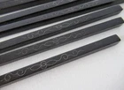 C.1991; Wood carved set of 16 Chinese chopsticks, with silver plate inlaid detail to Holder/Carrier Box as well as within each chopstick(s), as images indicates. The Holder/Box has a Chinese Dragon motif design detail. This set was sourced in Upstate, NY, from a North American Businessman, with industrial ties, from the glass manufacturer's industry/trade/owner's with North American projects in Major U.S. Cities. The set is also retained with the original packaging of the exterior case box, as the item was a gift from Glass fabricators within China, when business tripes delegated a diplomatic and universal understanding in sourcing products for site specific projects. Carved Carrier/Holder: 10.25"W x 2.75"D x 1.50"H. Outer Box: 11.25"W x 3.25"D x 1.75"H. (MAIN DIMENSION) Chopsticks: 10.75"W x .25"D x .25"H. TOTAL 18 Pcs., which includes OUTER BOX, INNER CARRIER/HOLDER CASE & 16 Chopsticks. Dimensions 11.25ʺW × 3.25ʺD × 1.75ʺH