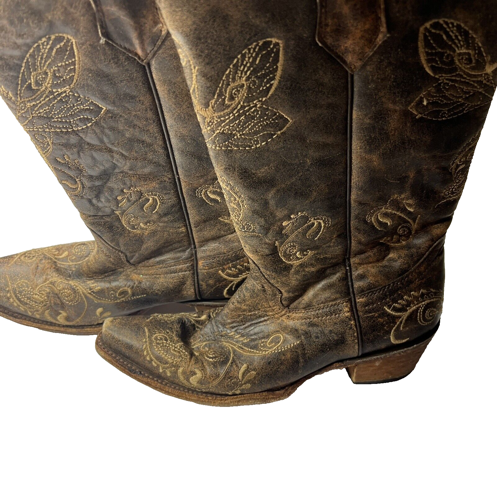 Circle G Women's Cowgirl Boots 6.5 M Brown Dragonfly Stitch Distressed Rodeo There are some markings on the boots. Please view photos for condition.