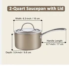 Circulon Premier Professional Bronze 2 Quart Pan Pot is a two-piece saucepan set with a spout lid and strainer. It is compatible with all stove types, including induction, electric, and gas. The non-stick surface coating ensures easy food release and cleaning. The set includes a 2 qt saucepan with a lid. The saucepan is made of high-quality material and has a round shape. It is a perfect addition to your kitchen and suitable for cooking on induction, electric, and gas ovens.