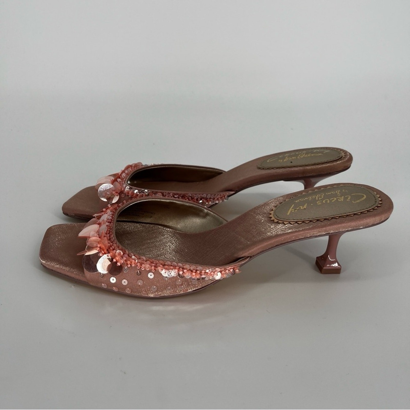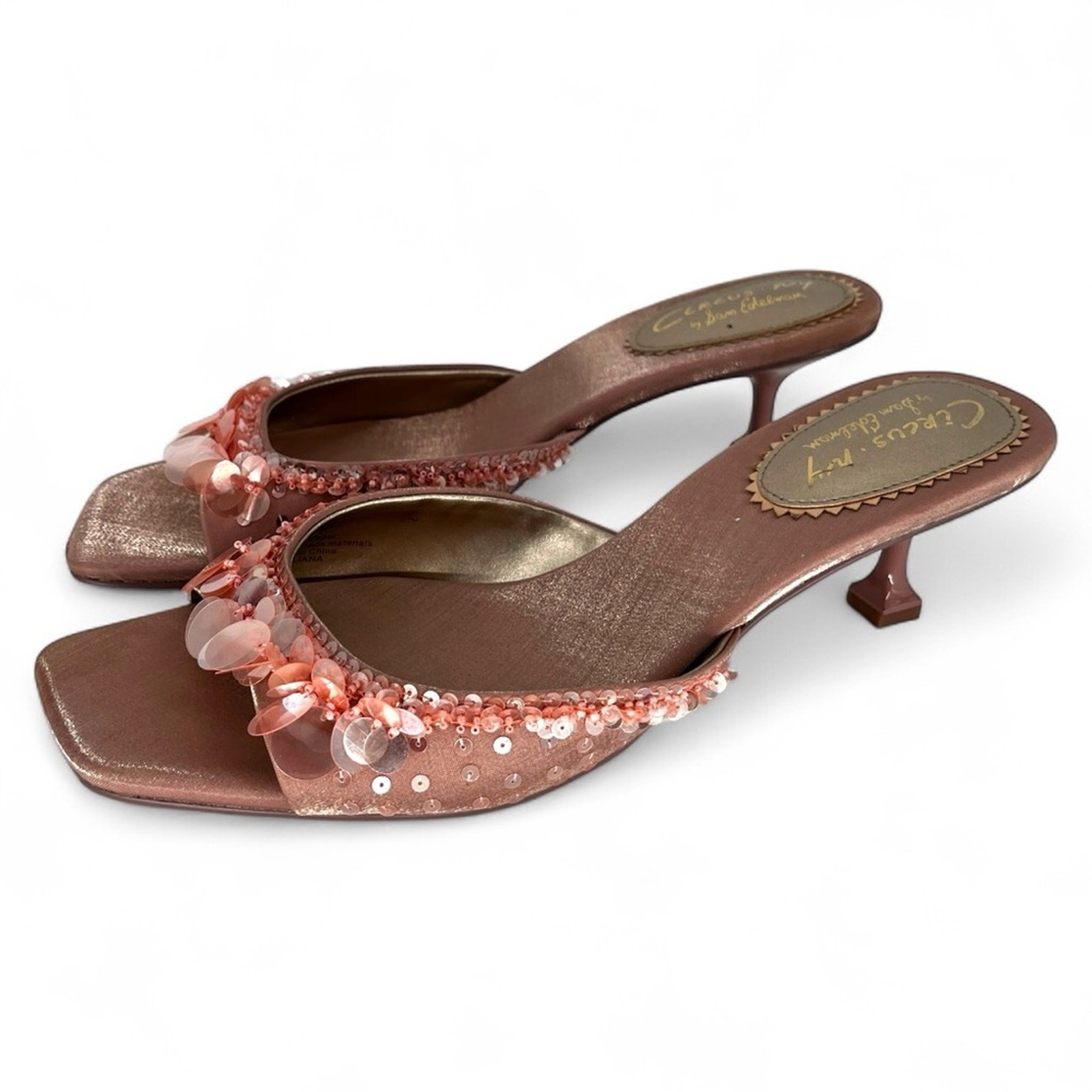 Circus NY by Sam Edelman Juliana Blush Women’s Heeled Mules Beaded Satin Size 11M Brand: Circus NY by Sam Edelman Size: US 11M Type: Heeled Mules / Dress Sandals Color: Blush Pink Material: Satin upper with iridescent beads, sequins & embellishments; synthetic sole Closure: Slip-on Toe Shape: Square toe Condition: Excellent pre-owned The Circus NY by Sam Edelman Juliana Mules in blush pink satin exude playful elegance with a vintage-inspired flair. Adorned with iridescent sequins and beads, these statement heels feature a square toe and a slim kitten heel for a sophisticated yet whimsical look. The shimmering satin finish and intricate detailing make them a stunning choice for special occasions or evening events. Perfect for parties, weddings, or dressy nights out, these mules combine feminine glamour and retro charm in one effortless silhouette. NWT Retail - $94 Feminine, Glam, Chic, Coquette, Y2K, Elegant, Statement, Dressy, Romantic, Vintage-Inspired, Evening, Party