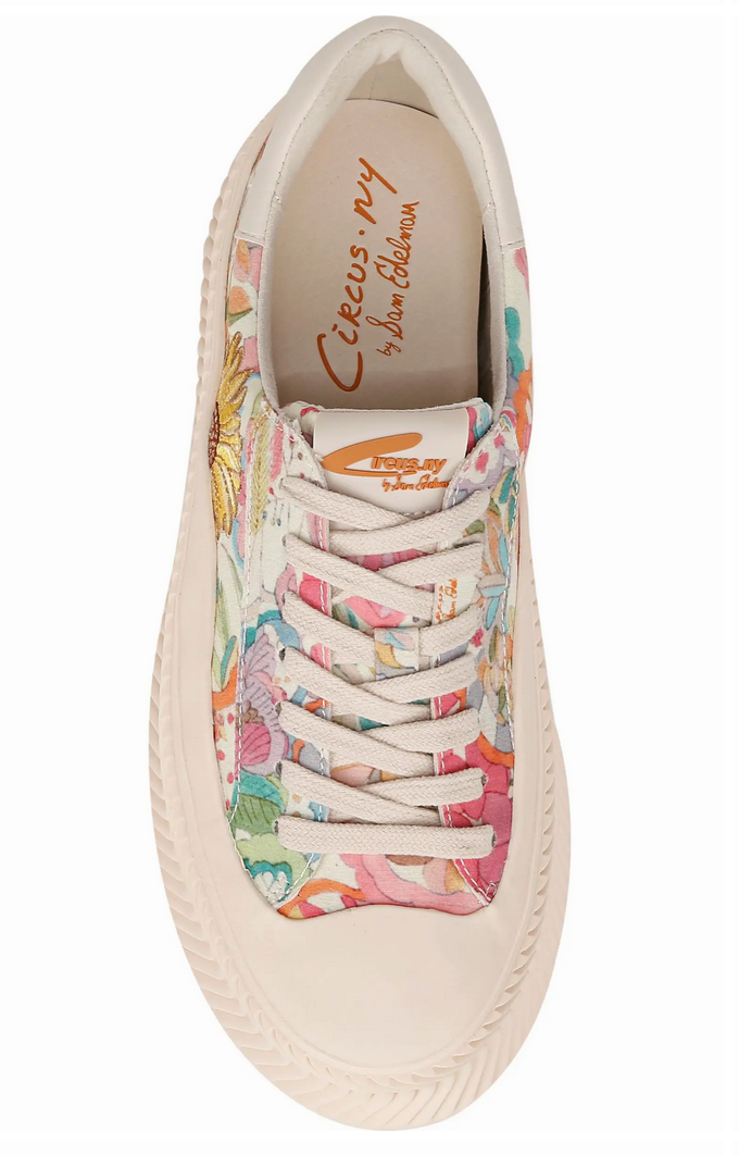 Circus NY by Sam Edelman Women's Tatum Flower Platform Sneaker Colorful flowers make a splash on a low-top sneaker grounded by a chunky platform sole. 1 1/4" platform Lace-up style Synthetic and textile upper/synthetic lining and sole Imported **Authenticity Guaranteed*** Item Condition: BRAND NEW !!