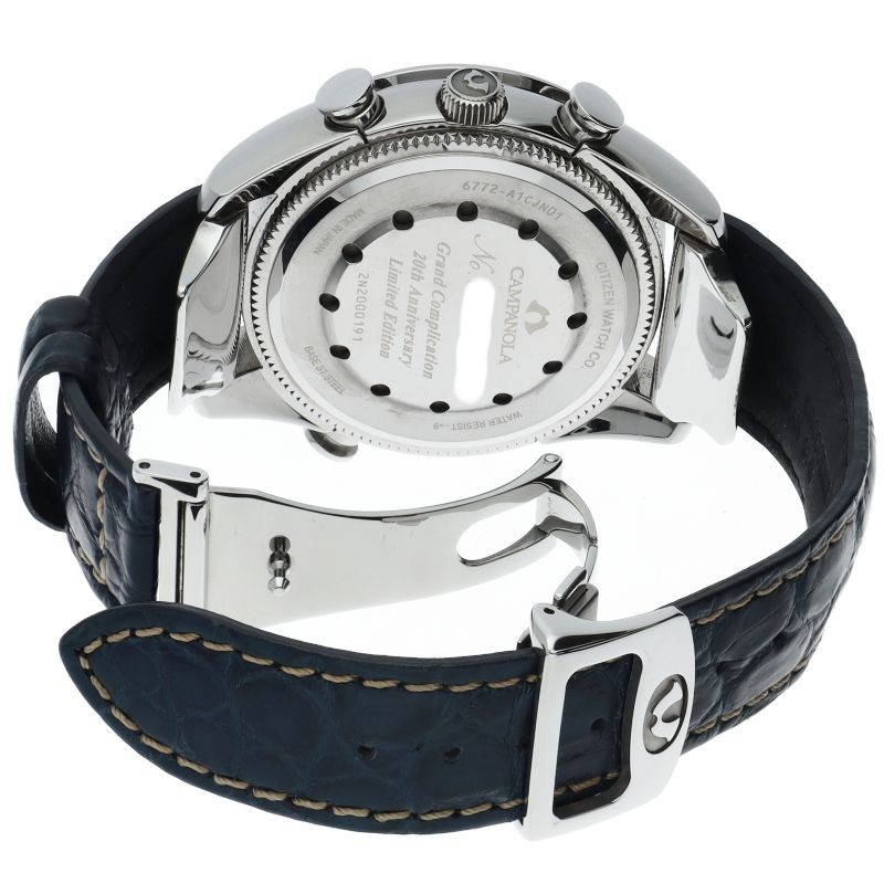 Description Thank you for viewing this listing. This is the Citizen Campanola AH4086-13L “SOHA” (蒼波) , a 20th Anniversary Grand Complication model, limited to 120 pieces worldwide . The dial is crafted from blue lacquer infused with metallic powder , representing the shimmering reflection of moonlight on the ocean. This special edition features full Grand Complication functions , including: Moonphase Chronograph Perpetual Calendar Minute Repeater Multi-function quartz movement The watch is in excellent condition , showing very little signs of use. Comes with original box and warranty card dated March 2023 . Product Details: Brand: Citizen Series: Campanola Model: AH4086-13L / 6772-A1CJN01 Case: Stainless Steel Strap: Leather Dial: Blue lacquer “SOHA” Weight: approx. 119.4g Case size: approx. 43 mm Movement: Quartz Limited Edition: 120 pcs Warranty: Included (03/2023) Retail Price (Japan): ¥506,000 Included Items: Original box Warranty card (dated March 2023) Condition: Excellent / Near Mint No major scratches, very well maintained Fully functional A rare and highly collectible Campanola model with exquisite Japanese lacquer artistry. All our products are 100% authentic, so you can shop with confidence. Please add our store to your favorites! If you're looking for a Japanese product, please feel free to contact us. Important Notice Certain documents such as booklets or warranty cards may contain personal information. In cases where personal details cannot be removed safely, those specific items may not be included in the shipment. Shipping We ship via FedEx, DHL, and Japan Post. All shipments come with a tracking number, so you can order with confidence. You can check the status of your shipment at any time. We only ship to addresses registered with eBay. If you would like to ship to a different address, please change your address on eBay before placing your order. Payment We usually ship within 2-5 business days after confirming your payment. Delivery times may vary depending on the product, so please check the delivery time for the product you purchased. International Buyers - Please Note: Import duties, taxes, and fees are not included in the item price or shipping costs. These fees are the buyer's responsibility. Please check with your country's customs office prior to bidding/buying. These fees are normally collected by the shipping company and are in addition to any additional shipping charges incurred when you pick the item up. We do not mark items for less than their actual value or as "gifts." U.S. and international government regulations prohibit such behavior.