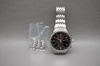For sale is a Citizen Eco-Drive B612-S114837 Black Dial Tachymeter Solar Quartz Chronograph Watch Movement: Quartz Condition: Used Strap: Original bracelet sized to approximately 18cm with 3 extra links Box: None Warranty card: None Manual: None Caseback is engraved. Approximate measurements: Case diameter: 40mm (excluding crown) Lug width: 20mm Lug to lug: 46mm Thickness: 12.5mm Please inspect all product photos in detail prior to purchase. Item does not include accessories beyond what is described and photographed.