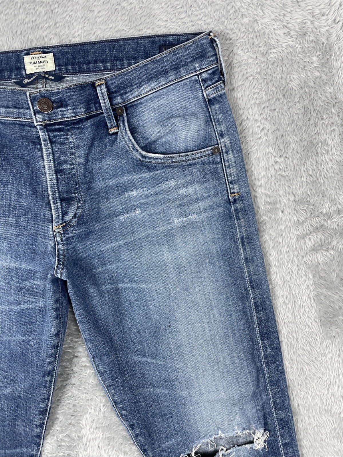 Citizens Of Humanity Jeans Women's 29 Blue Emerson Slim Boyfriend Distressed/RIpped CHECK THE MEASUREMENTS. Title only states tag size. Sizes can vary. Condition is used. Acceptable used condition. See photos for condition and detail. Please look carefully at all photos. The photos are an important part of the description. If you have questions, please ask. Returns are accepted within 30 days of purchase. The item must be returned in exactly the same condition as received. Items will be inspected, serial numbers checked, etc. Shipping fees are not refundable.