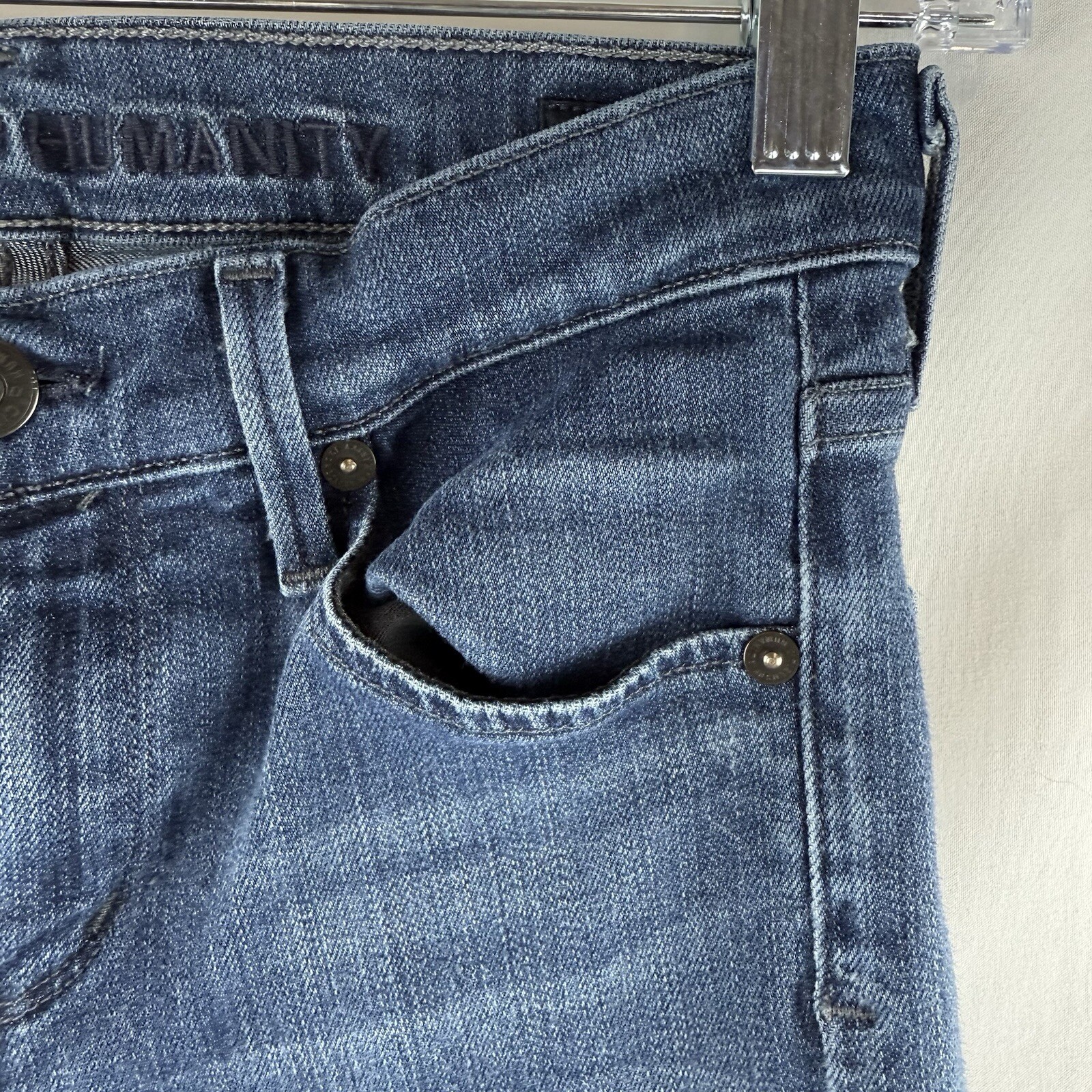 Citizens of Humanity Women's Jeans in size 26 feature a low rise and skinny leg style. Made of denim with a light wash, these jeans offer comfort and stretch with a classic fit. The 5-pocket design includes a zip closure and logo accents. Suitable for all seasons, this classic pair of jeans is machine washable and made in the United States. Inseam Measurement: 30"