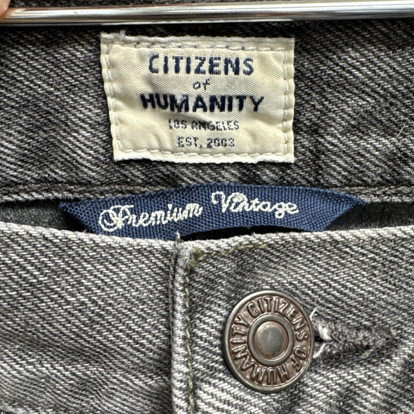 Elevate your denim game with these high-quality Citizens of Humanity Dree High Rise Straight Premium Vintage Jeans in a stylish gray wash. Crafted from 100% cotton denim fabric, these jeans are perfect for any season. The jeans feature a high-rise waist, zip and button closure, and a straight fit with a 26-inch inseam and 30-inch waist size. The 5-pocket design adds functionality to this fashionable garment, making it perfect for any occasion. The solid pattern and medium fabric wash make these jeans versatile and easy to pair with any top. Accented with buttons and zippers, these jeans are sure to become your new favorite.
