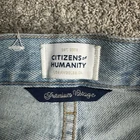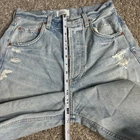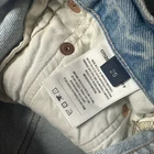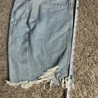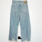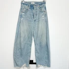 The aptly named Horseshoe jeans boast a curved, wide-leg silhouette with frayed hems and distressed detailing. Pockets: five pockets Care instructions: machine wash cold Made in the USA Color: blue Designer color name: Savahn Frayed ends Material: 100% cotton Closure: button fastening Excellent used condition. No holes or stains. Non-smoking home. Barrel, trendy, Viral, quiet luxury, designer, denim, luxury, denim, boho, bohemian, casual, everyday core aesthetics, norm, core, grunge, skater, California, statement, edgy, urban