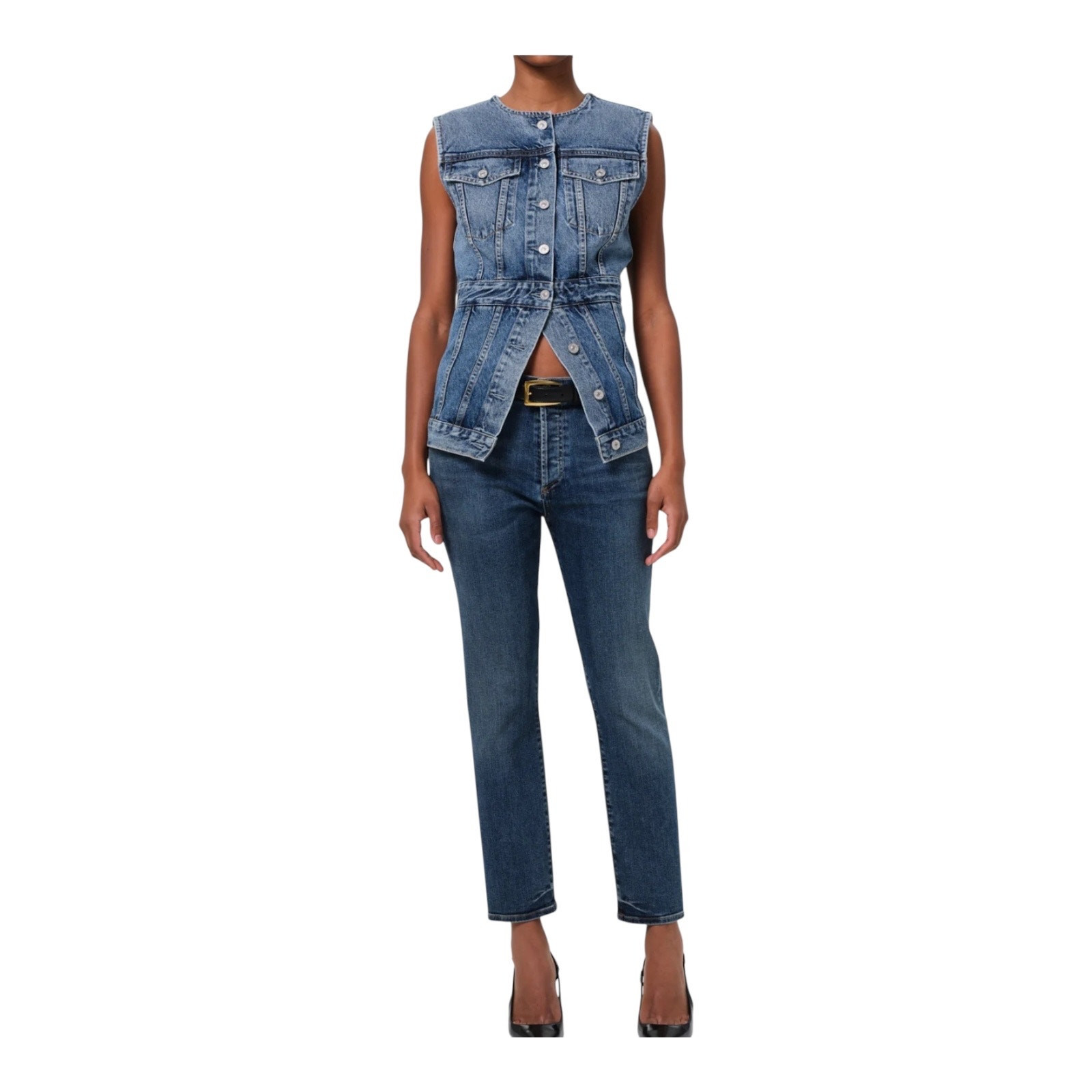 Citizens of Humanity Slim Fit Dark Wash Boyfriend Straight Leg Jeans Womens 28/6 Closure: Button Fly Rise: 10" Inseam: 27" Leg Opening: 14" 16" waist laying flat dark wash excellent pre-owned condition 28 / 6 keywords: denim jeans everyday straightleg darkwash