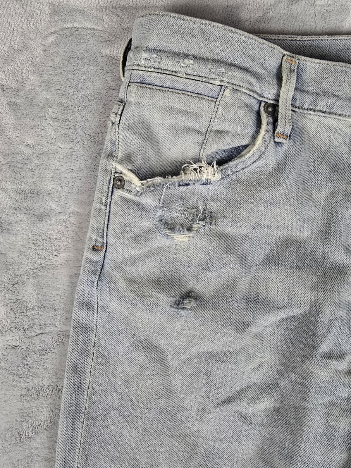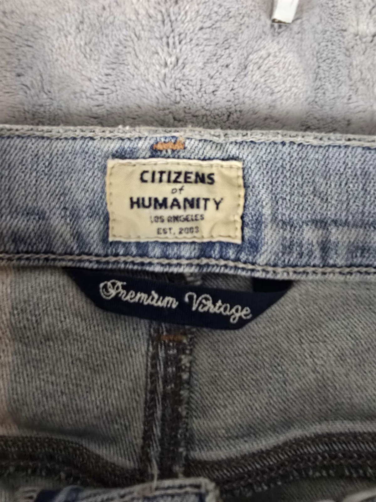 Elevate your denim collection with the Citizens of Humanity Women's Fleetwood High Rise Flare Jeans. Tailored for a comfortable yet flattering fit, these jeans feature a classic mid-rise and a trendy flared leg, creating a timeless silhouette that complements any wardrobe. The distressed medium wash adds a touch of edgy sophistication, making these jeans a versatile choice for various occasions. Crafted from a blend of cotton, cotton blend, and polyurethane, these jeans ensure both durability and comfort. The 5-pocket design keeps your essentials close, while the zip and button closure ensures a secure fit. Whether you're out on the town or enjoying a casual day, these jeans will be a go-to in your collection. In good condition with two belt Loops needing Stitching.