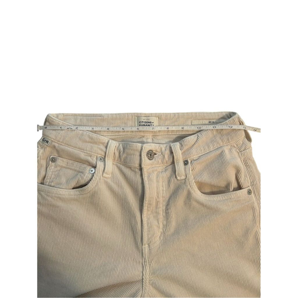 Discover the perfect blend of comfort and style with these Citizens of Humanity dress pants. Crafted from soft corduroy in a versatile beige hue, these pants are your go-to choice for casual outings or relaxed office days. The mid-rise fit and classic 5-pocket style offer both functionality and a flattering silhouette, while the belt loops provide the option to accessorize. Ideal for fall, these pants are machine washable for easy care. Pre-owned but in excellent condition, ready to elevate your wardrobe. Keywords: Citizens of Humanity, dress pants, corduroy, beige, casual, women's pants, mid-rise, 5-pocket, fall fashion, machine washable, pre-owned. Brand: Citizens of Humanity Size: 24 Style: Dress Pants Color: Beige Department: Women Type: Pants Material: Corduroy Features: 5-pocket style, Belt loops Closure: Zip Pattern: Solid Occasion: Casual Fit: Regular Rise: Mid (8.5-10.5 in) Season: Fall Garment care: Machine Washable Comes from smoke free household. Please see other listings as can combine shipping.