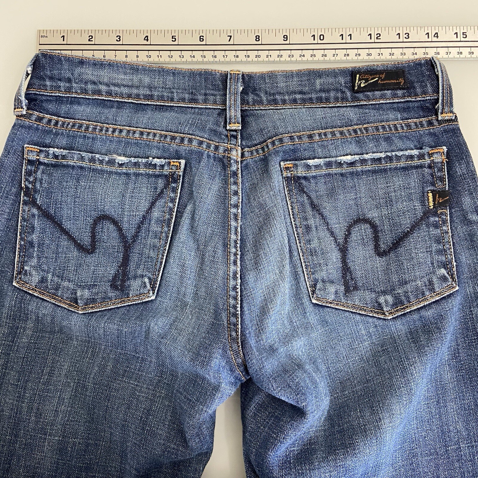 Features whiskering and minor distressing. Tag is 27 but ruler measurements show 28 waist. Measurements in pics. Color appearance may vary on different devices. Thanks for stopping in. Please let me know if I can answer any questions.