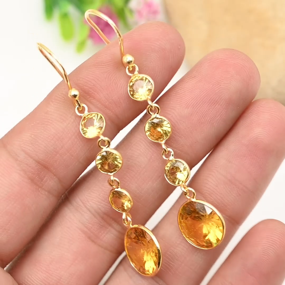 Citrine Dangle Earrings Handmade 925 Sterling Silver Women’s Gift Jewelry