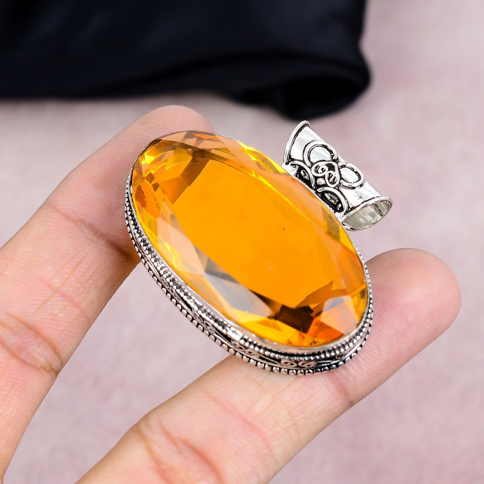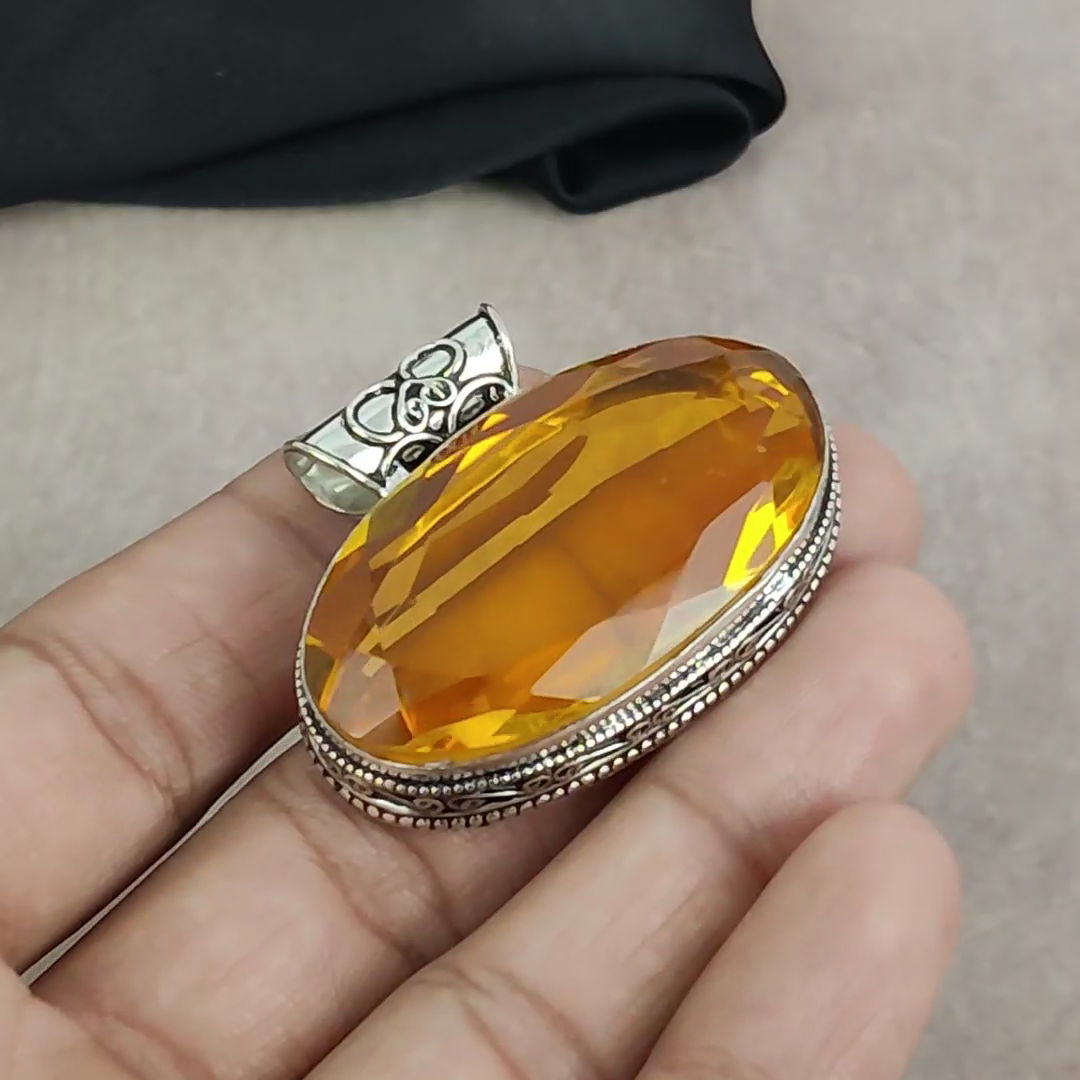 Main Stone Shape:OvalClosure:Same As PictureBrand:HandmadeMetal:Sterling SilverBase Metal:Sterling SilverNumber of Diamonds:N/AChain Type:N/APendant Shape:Same As PictureColored Diamond Intensity:N/AMain Stone Creation:NaturalDiamond Clarity Grade:N/ATotal Carat Weight:10 carat and aboveNumber of Gemstones:1Theme:Beauty, Bohemian, Ethnic, Halloween, Love, NatureMain Stone:CitrineStyle:PendantType:PendantMain Stone Color:YellowCut Grade:N/APendant/Locket Type:Same As PictureCountry/Region of Manufacture:IndiaNecklace Length:3.9"Diamond Color Grade:N/ASecondary Stone:N/ACollection:HandmadeColor:SilverCountry of Origin:IndiaCertification:N/AMaterial:GemstoneSetting Style:BezelFeatures:HandmadeMetal Purity:925Main Stone Treatment:Not EnhancedOccasion:Anniversary, Birthday, Christening, Christmas, Engagement, Father's Day, Graduation, Mother's Day, Valentine's Day, Wedding