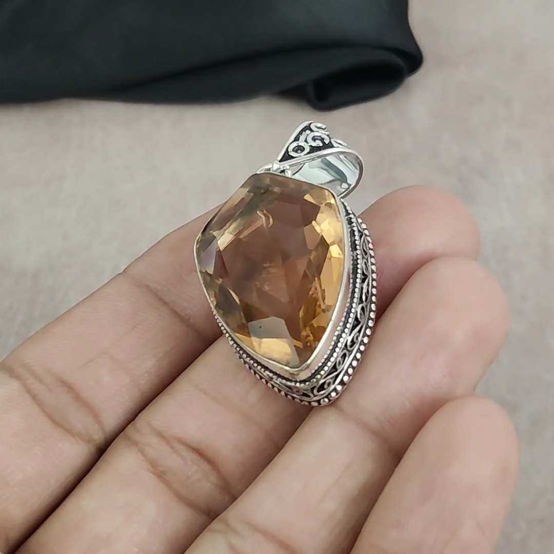 HomeCitrine Gemstone Pendant in 925 Sterling Silver Handmade Jewelry