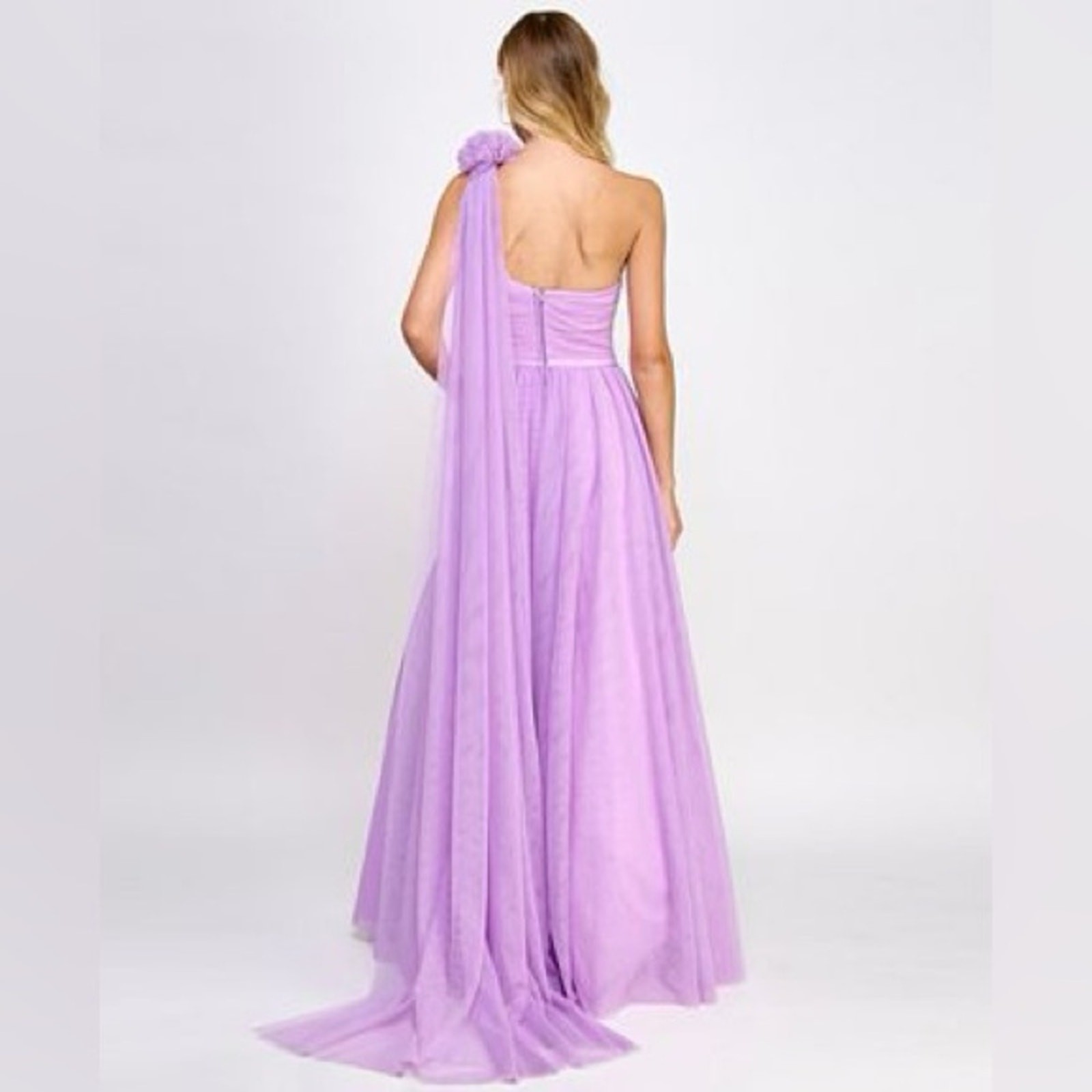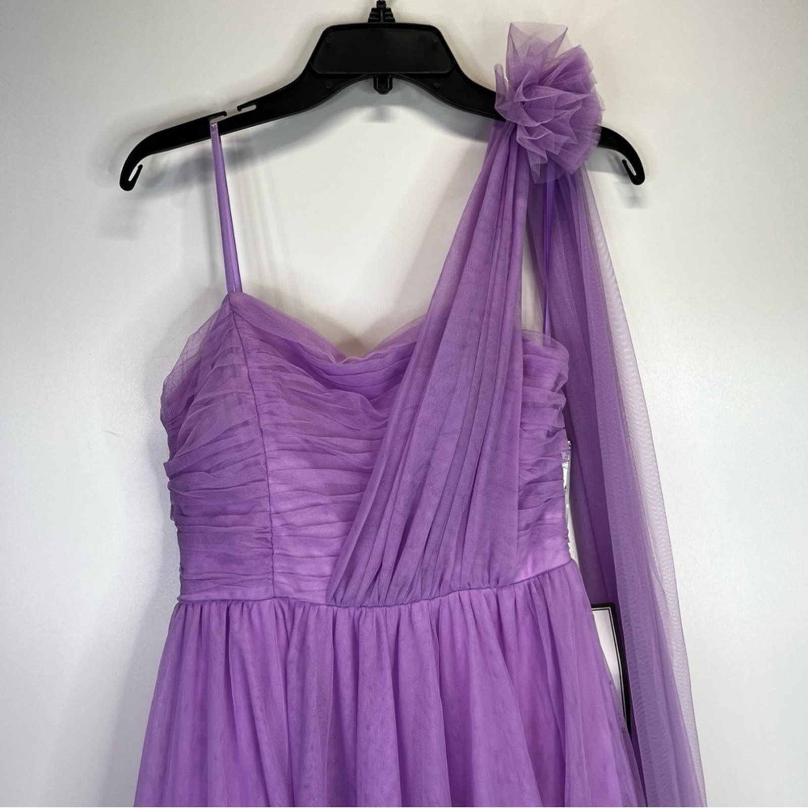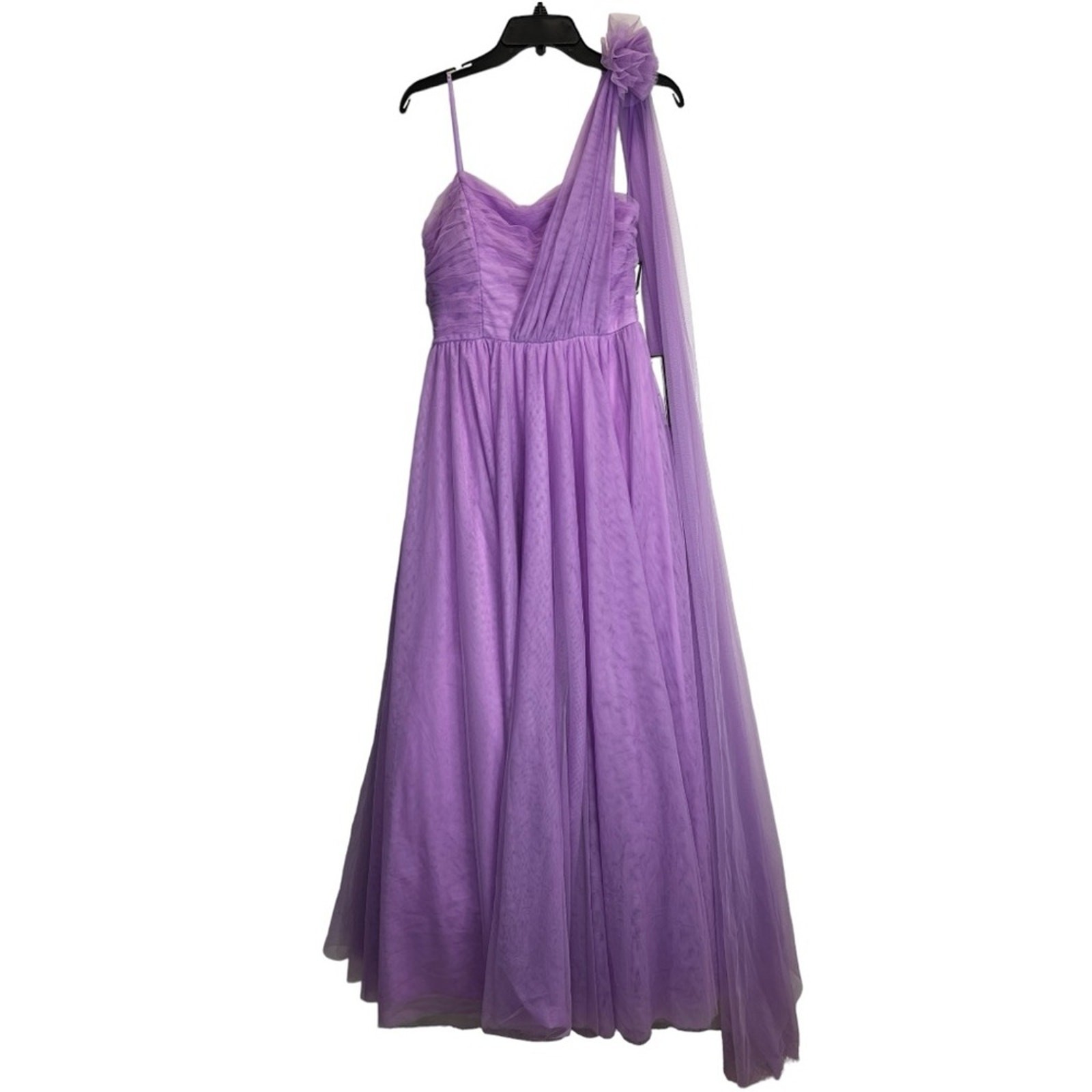 City Studio Rosette One-Shoulder Ruched Bodice Flyaway gown purple - 11/12 Brand: City Studio Size: 11/12 Type: Gown Color: Purple Closure: Back Zip Material: Polyester Condition: New With Tags You'll be the star of the show in this flowing juniors' gown from City Studios, with a sweet floral detail at the shoulder. The straight neckline and ruched bodice create a flattering fit. Single mesh strap with floral detail. Floor-length formal dress with a skirt that flares from the waist. This dress is perfect for making a grand statement at any special occasion. NWT - retail $169 Approximate Measurements Laid Flat: Pit to Pit: 16" Waist: 13.5" Length: 59" Event, Party, Formal, Semi-Formal, Dance, Gala, Glam, Special Occasion, Sophisticated, Cocktail, Wedding Guest, Prom, Eveningwear, Trendy, Bridesmaid, Pageant