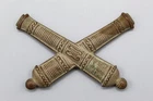 Civil War Artillery Cap insignia Officers issue, Crossed Cannon with high relief embossed surface meant to simulate bullion embroidery, All back hooks intact.