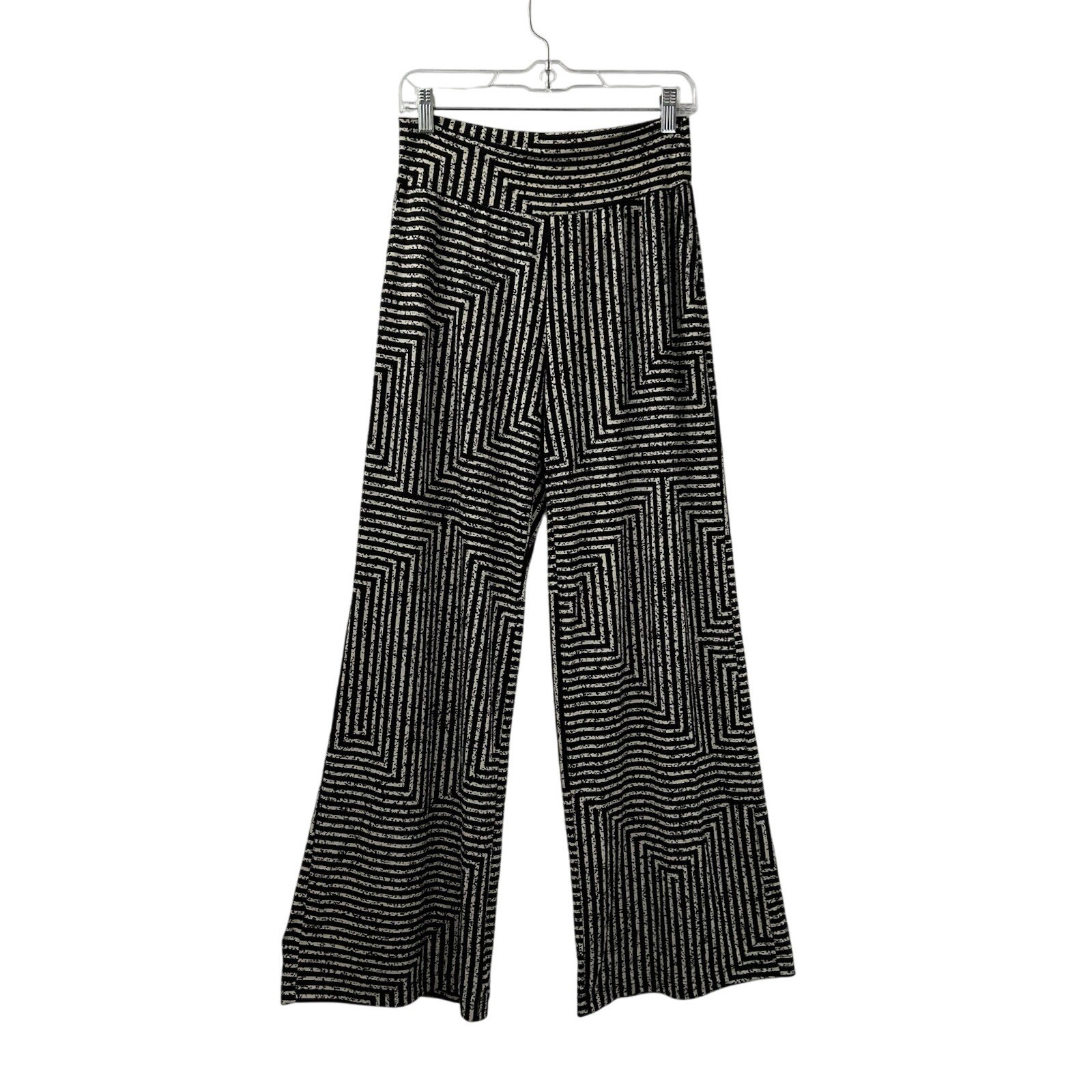 The Clara Sun Woo Women's Large Geometric Pull On Wide Leg Palazzo Pants in Black/White are stylish and versatile pieces for your wardrobe. Made from a comfortable blend of polyester, spandex, and rayon, these pants feature a high rise waist with an elastic waistband for a perfect fit. With a fashionable wide-leg design and ankle length, these pants are perfect for casual or travel occasions during the summer, fall, and spring seasons. Easy to care for with machine washable fabric, these pants are a chic addition to any woman's closet.